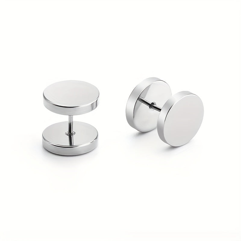 Men's Silver Round Disc Earrings 316L Stainless Steel Ear Clasps