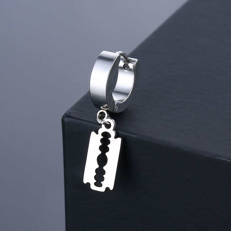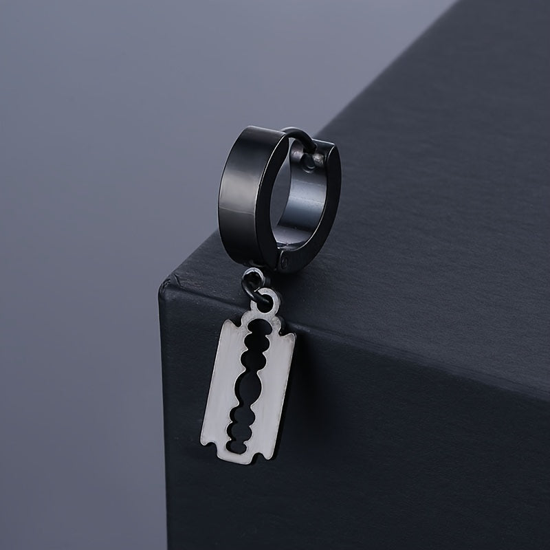 Stand out with these hip hop street style men's stainless steel dangle earrings featuring a blade pendant design.