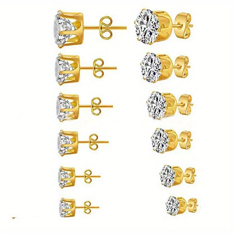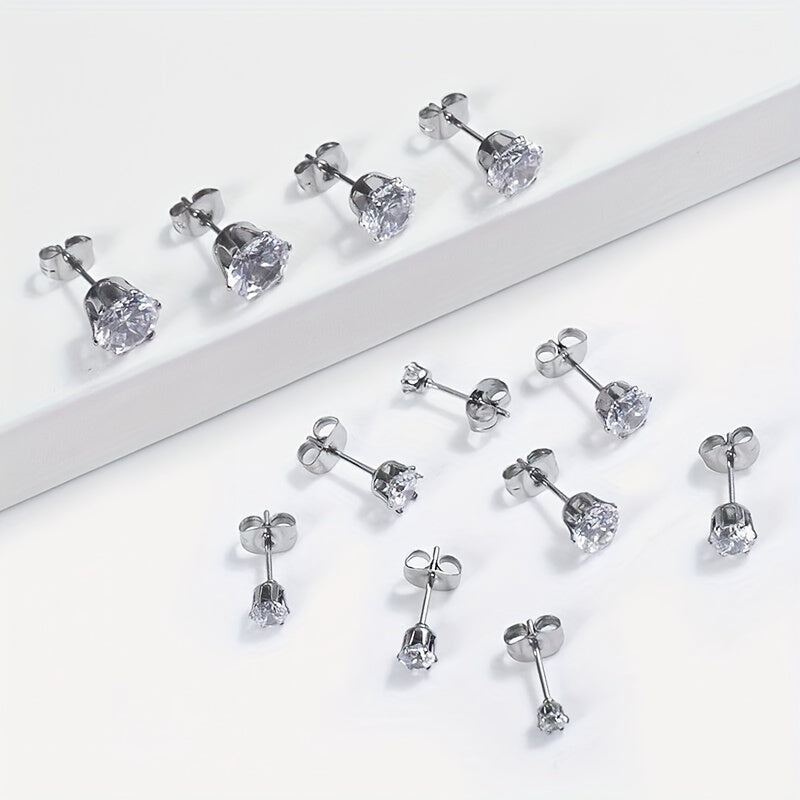 These stainless steel claw stud earrings feature a six claw design with integrated zircon, perfect for both men and women.