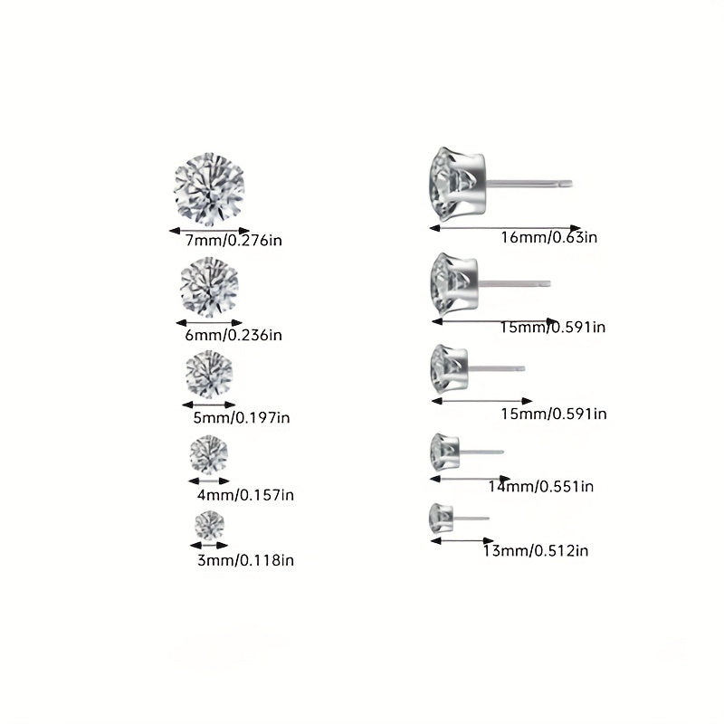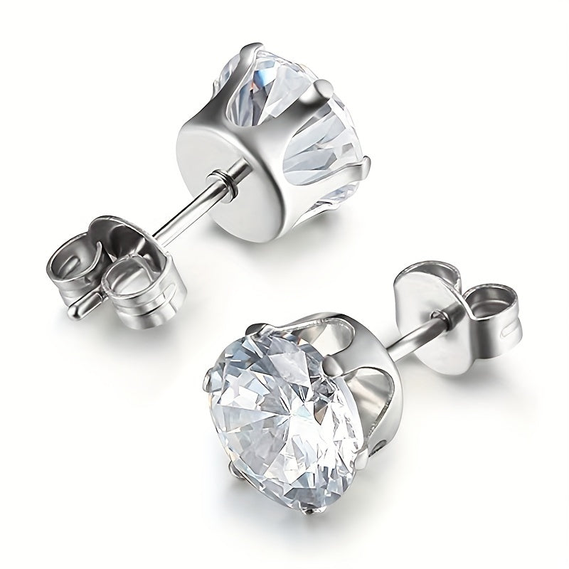 Men's Stainless Steel Claw Stud Earrings with Zircon 3mm 8mm