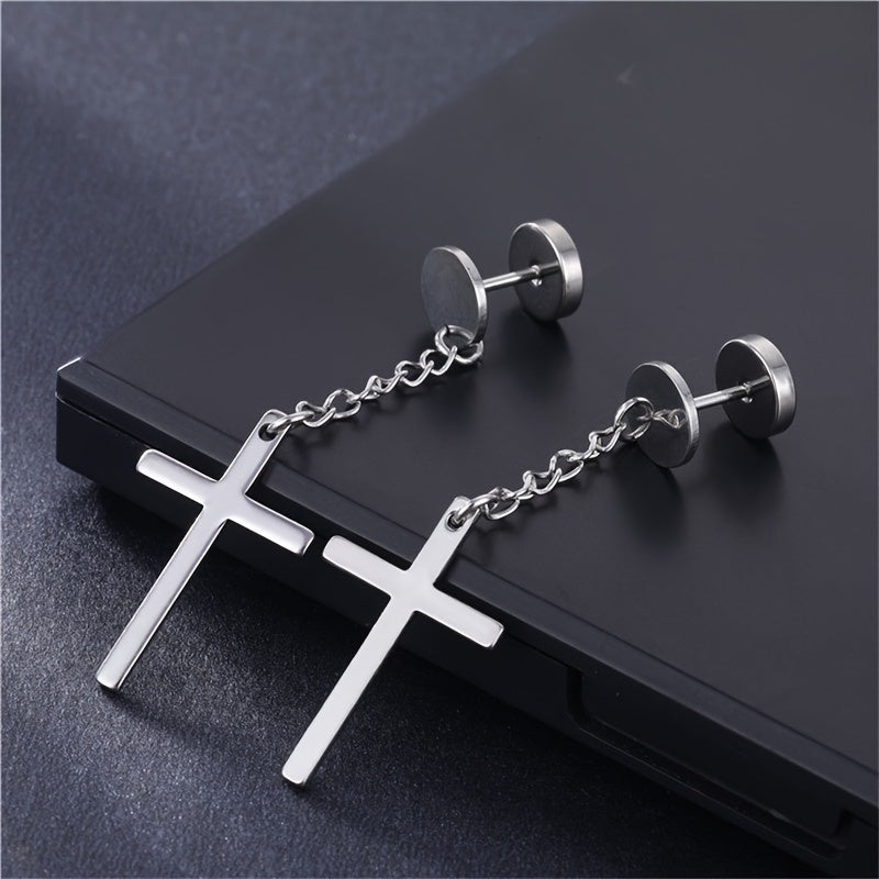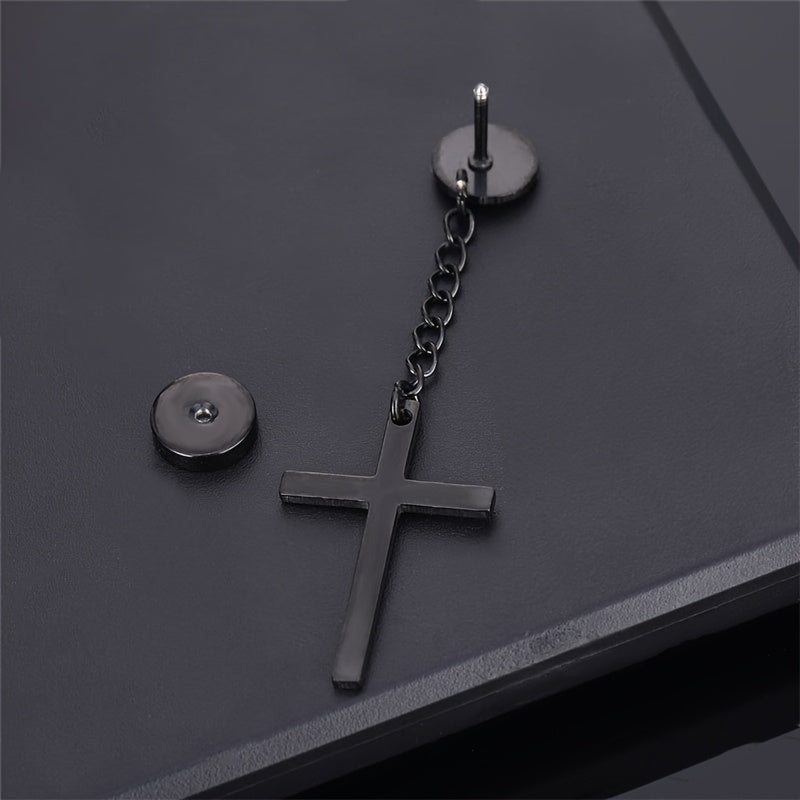 These round alloy earrings feature a stylish stainless steel cross design, perfect for men with a bold fashion sense.