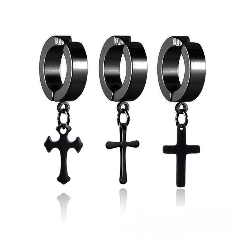 Men's Stainless Steel Cross Pendant Ear Clips Earrings
