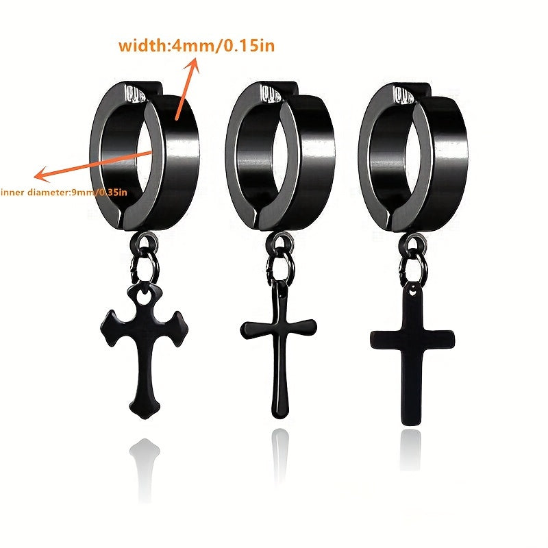 This pair of stylish earrings features a stainless steel cross pendant design. Perfect for couples or individuals looking to add a unique accessory to their outfit.