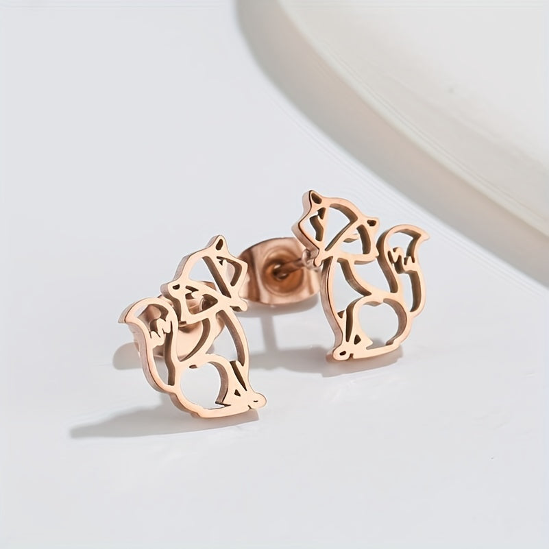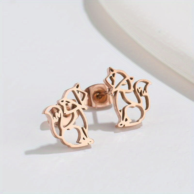 Make a unique fashion statement with these stainless steel fox earrings. The intricate origami design adds a touch of style to any outfit.