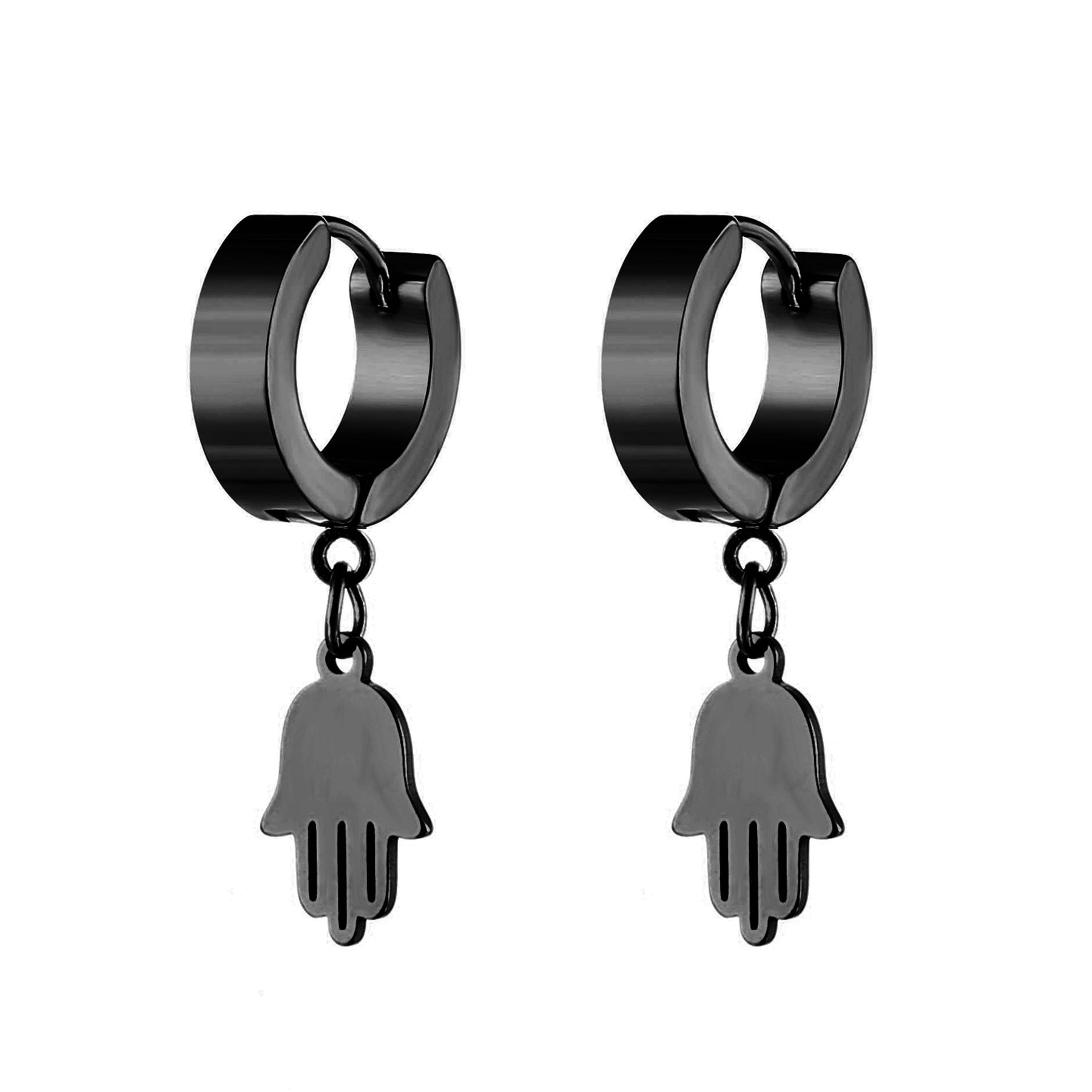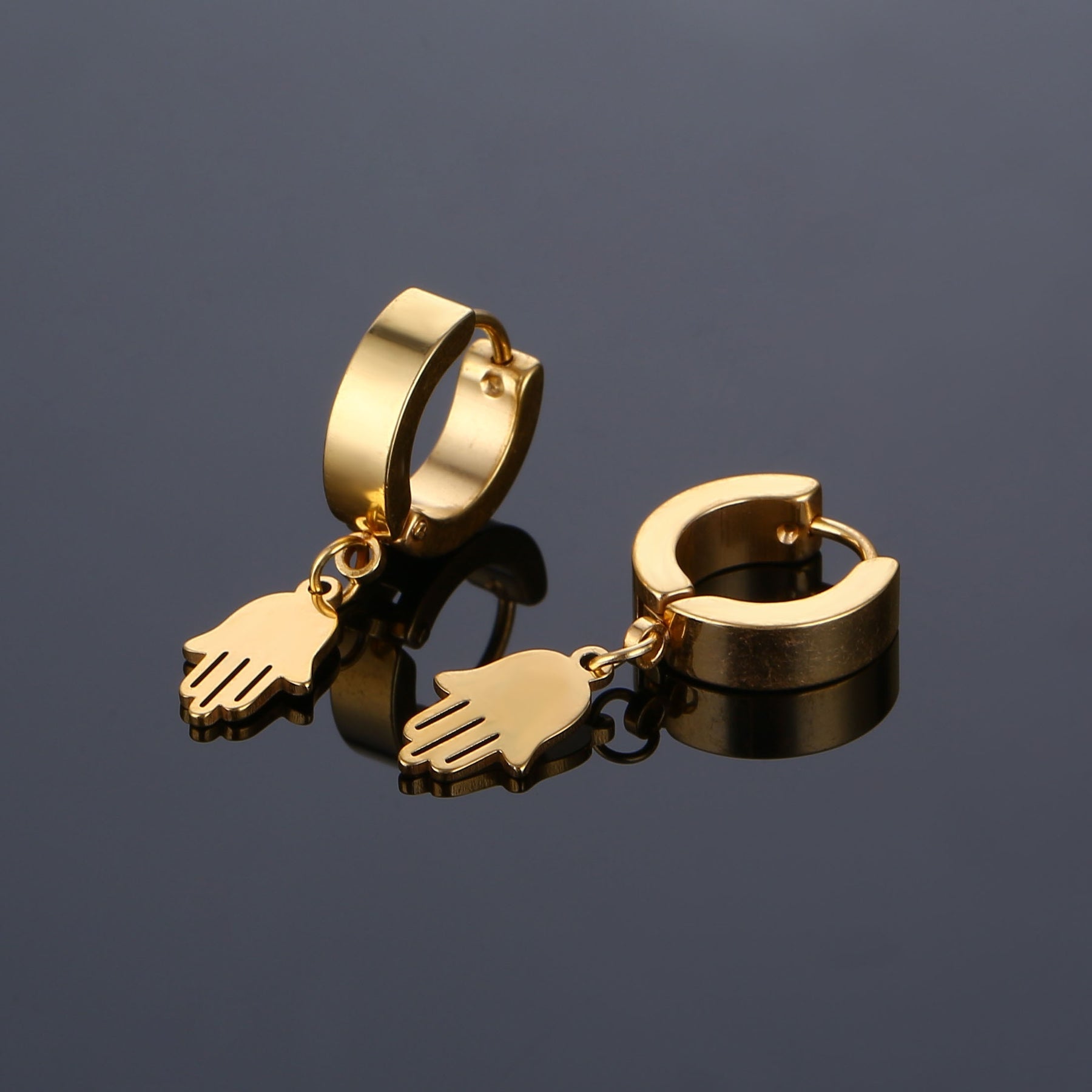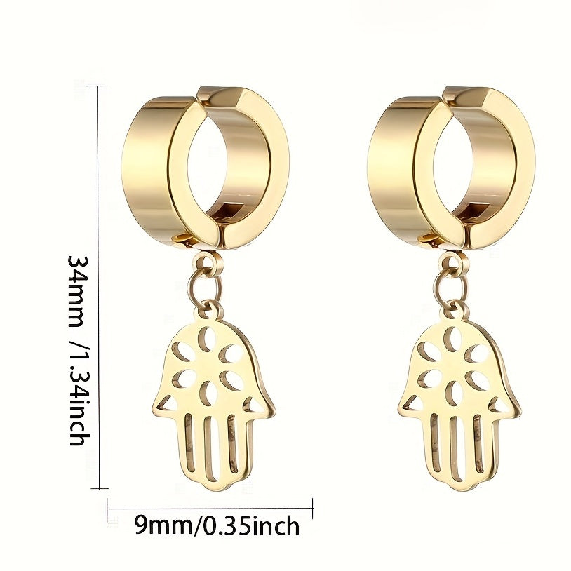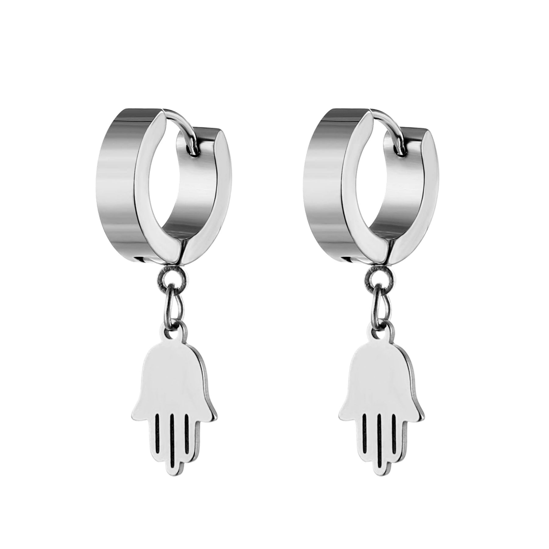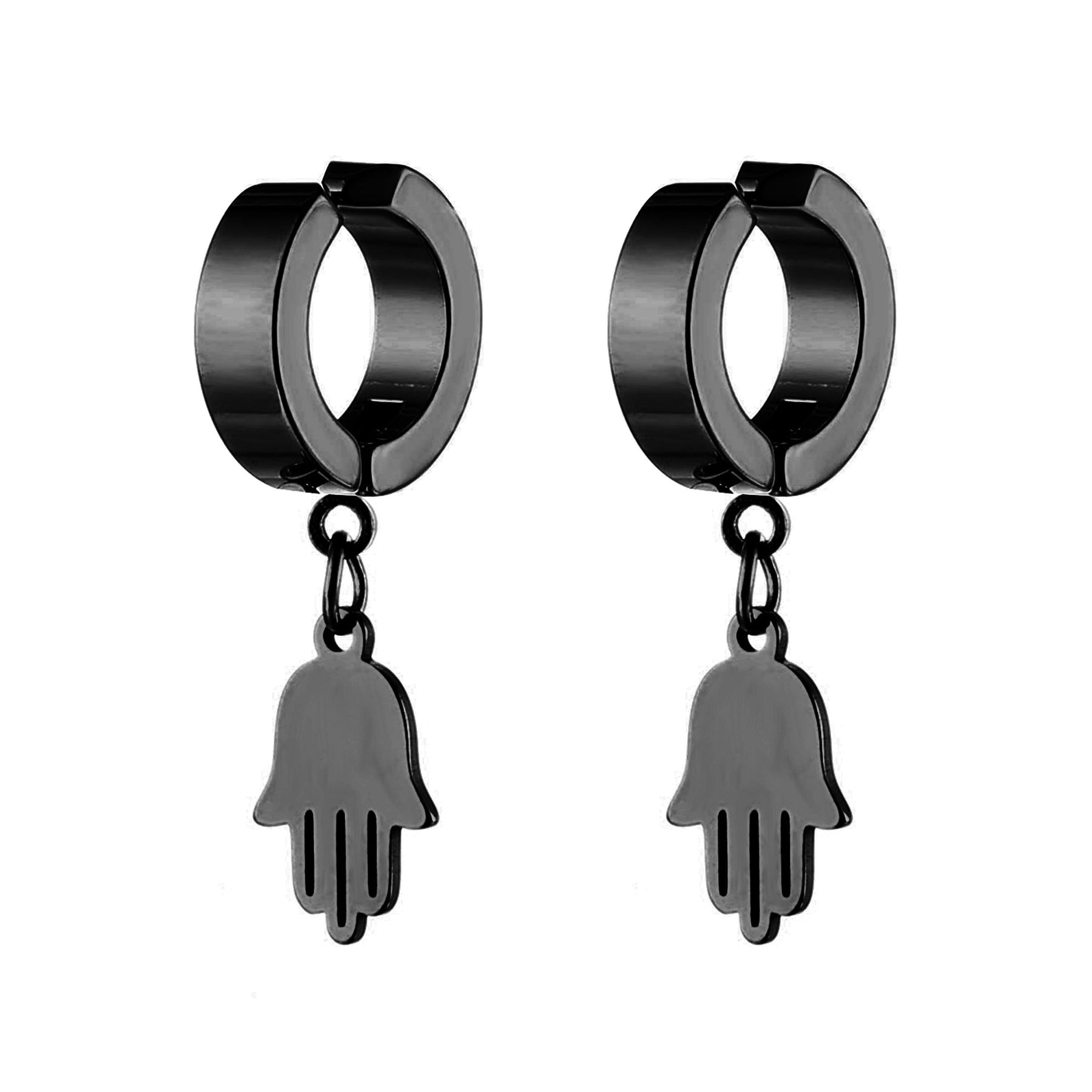 Add a touch of luck to your style with these stainless steel palm ear clip earrings. Crafted for men, these unique earrings are designed to make a statement.
