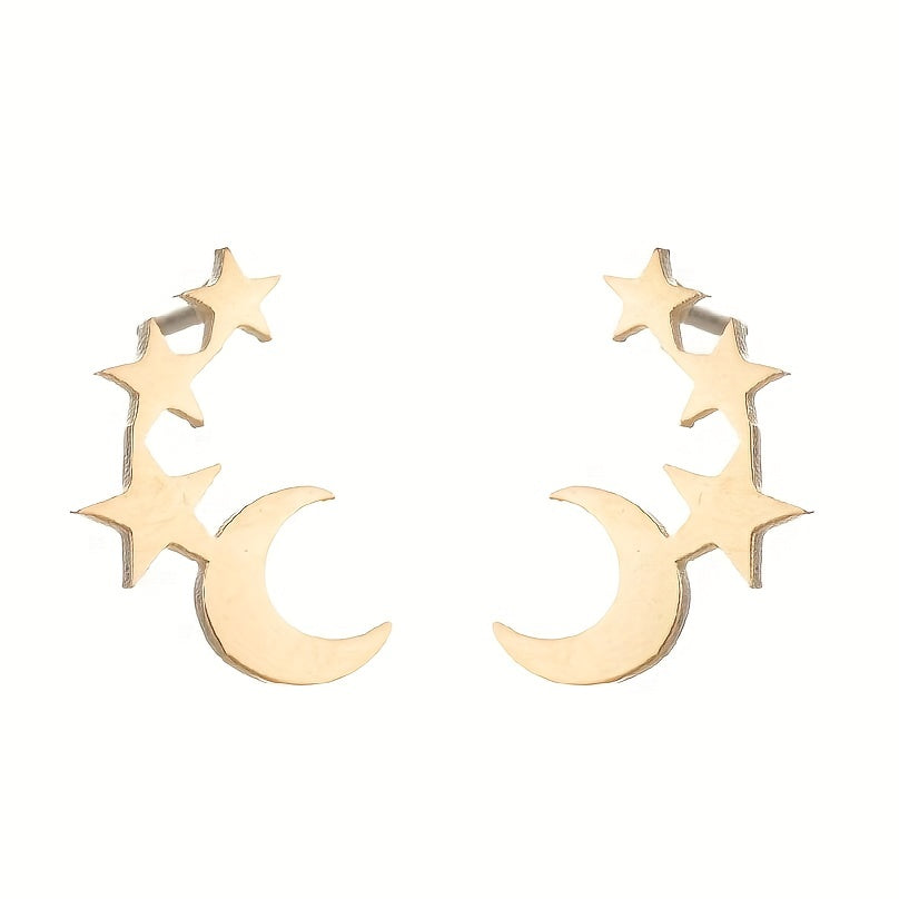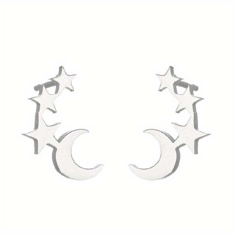Get this unique pair of stainless steel earrings featuring a coherent stars and moon pattern design. Perfect for adding a touch of celestial style to your look.