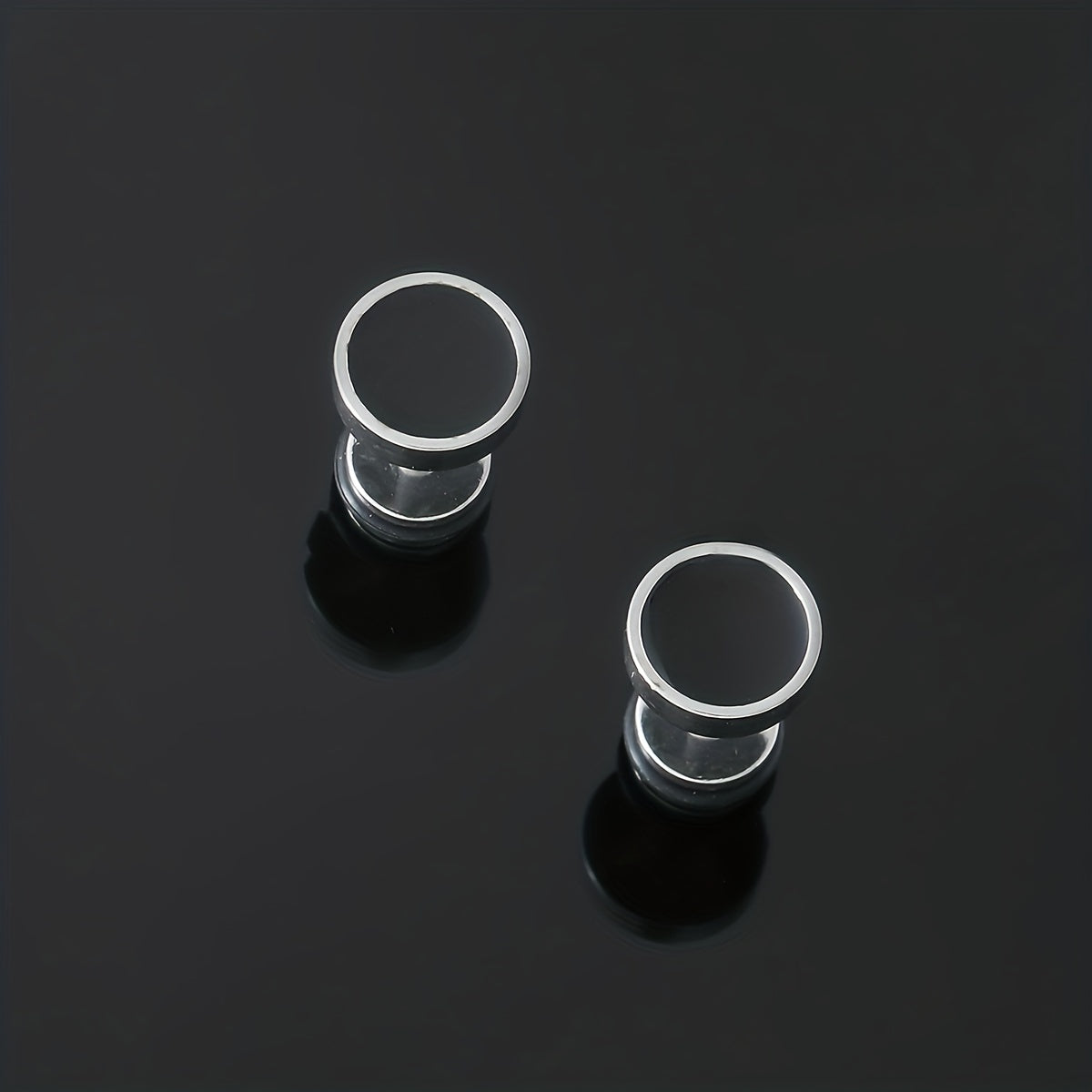 Complete your look with these stylish round stud earrings made from durable stainless steel.