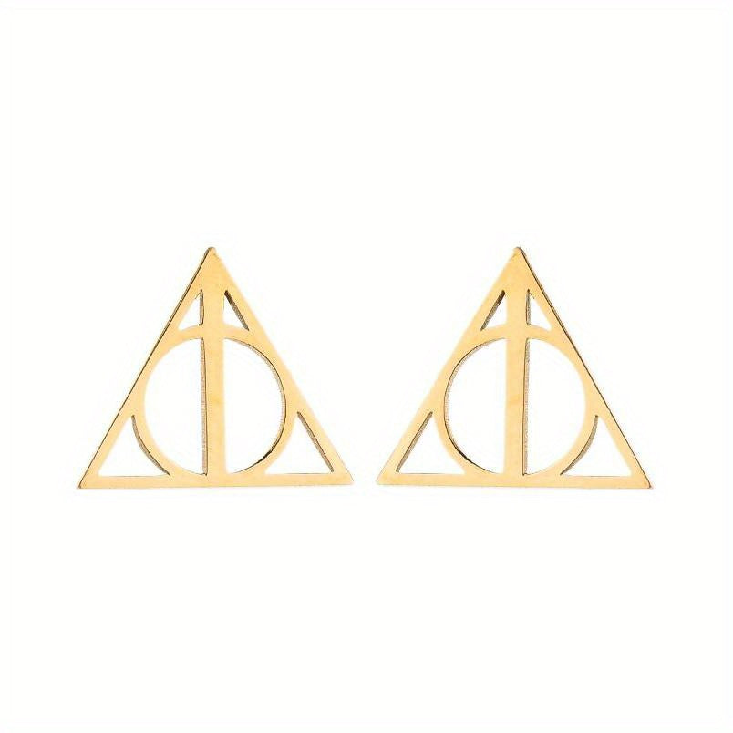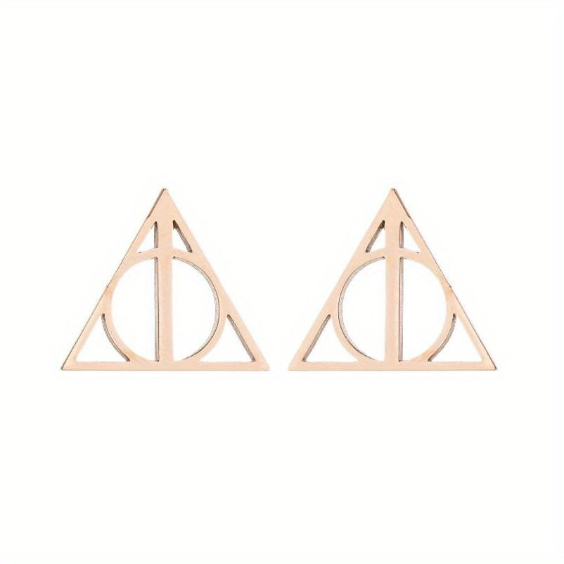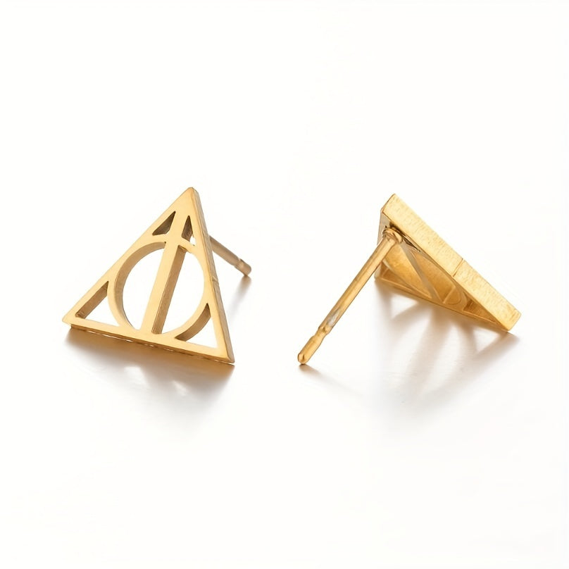 Add a retro touch to your look with these creative hollowed-out triangle studs earrings made of stainless steel.