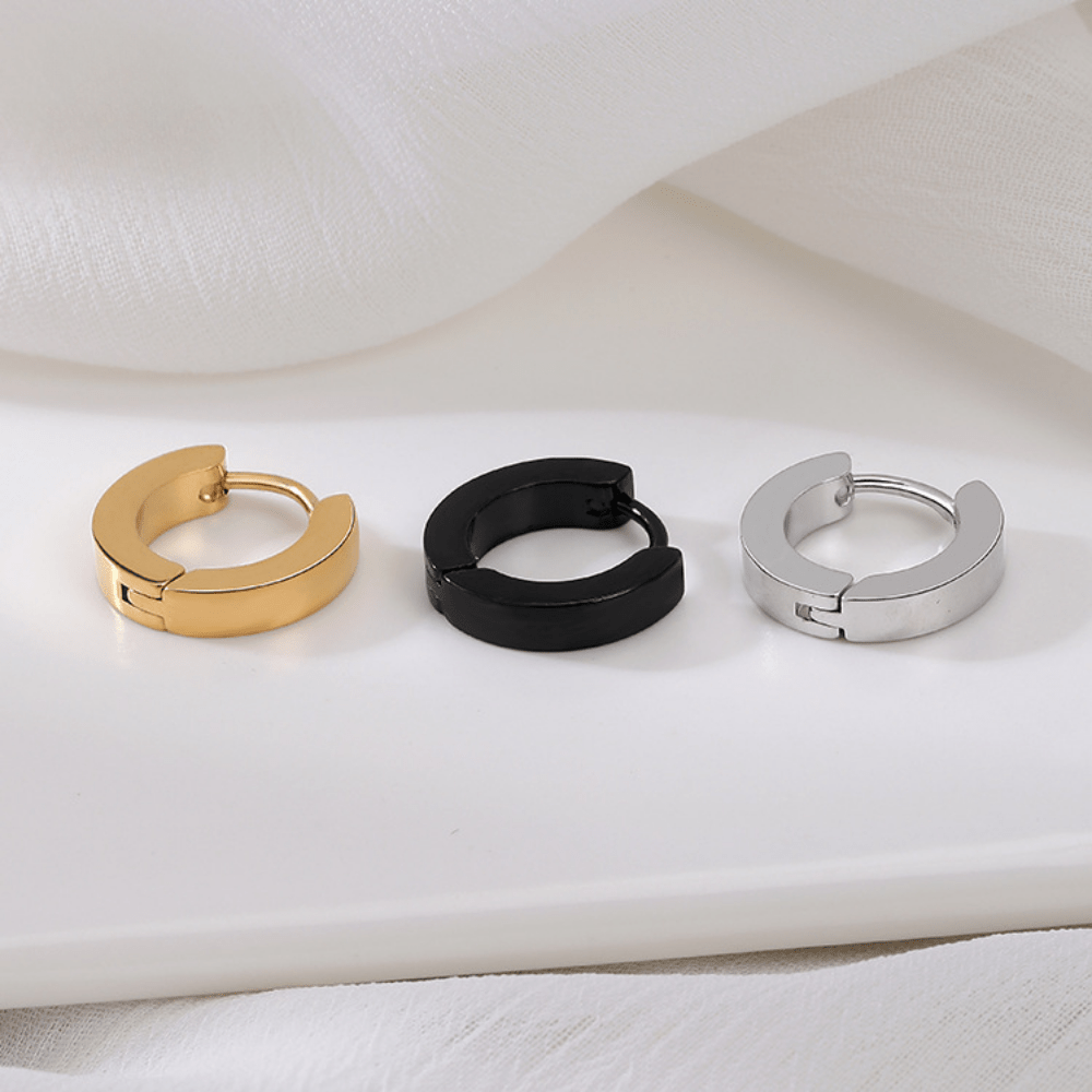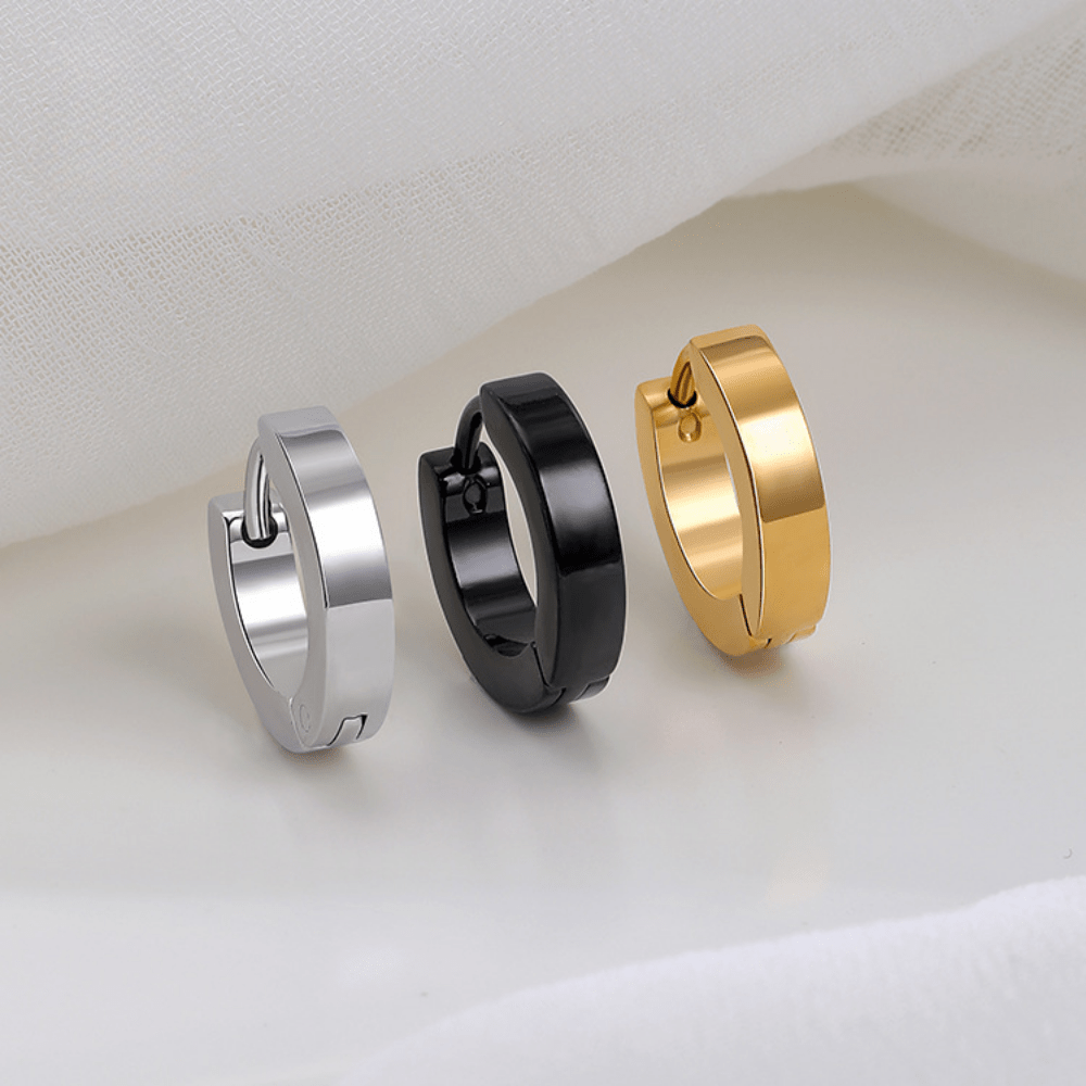 These titanium steel earrings feature a stylish buckle design suitable for both men and women. They have a hip hop punk retro vibe that adds a cool touch to any outfit.
