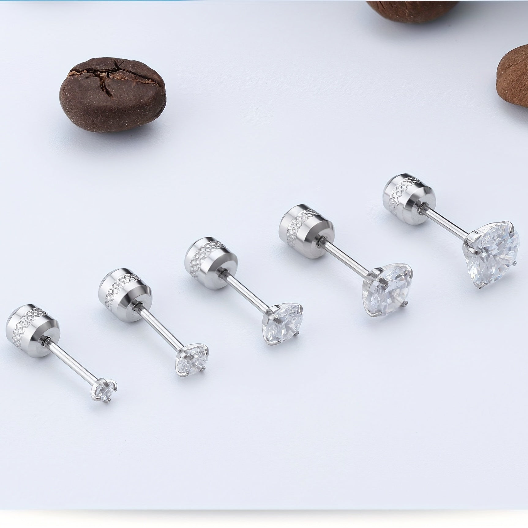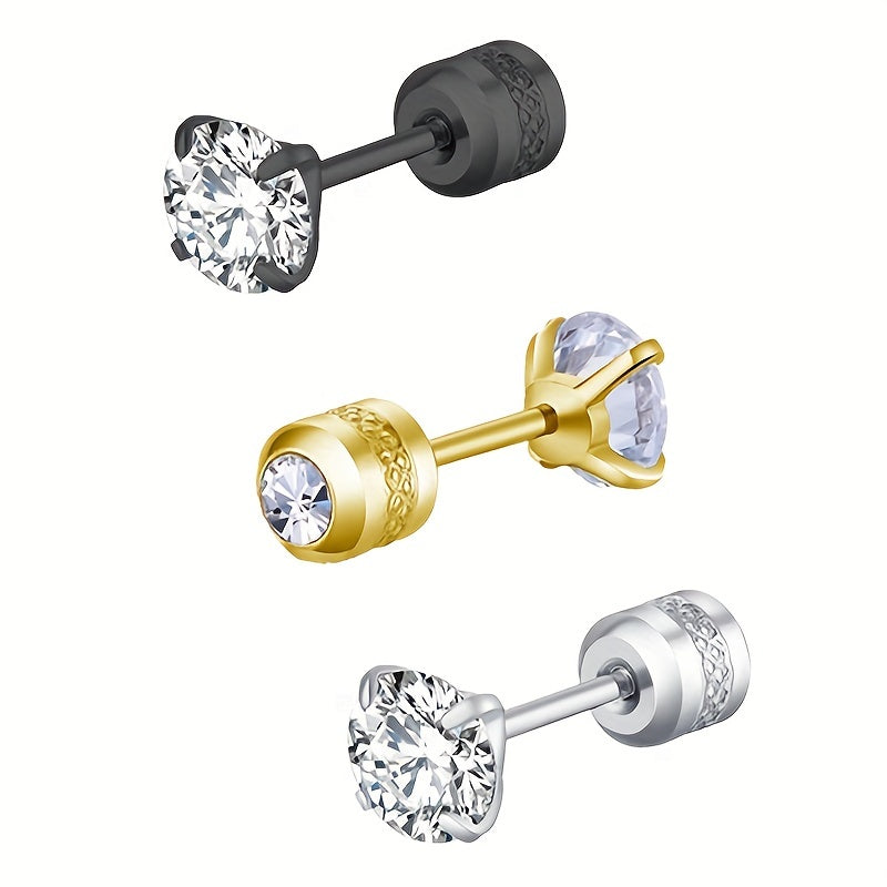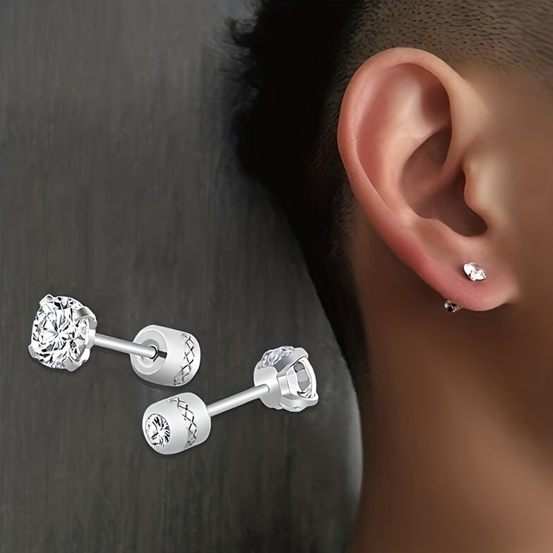 Upgrade your style with these fashionable titanium steel earrings featuring four-claw zircon design for a sleek look.