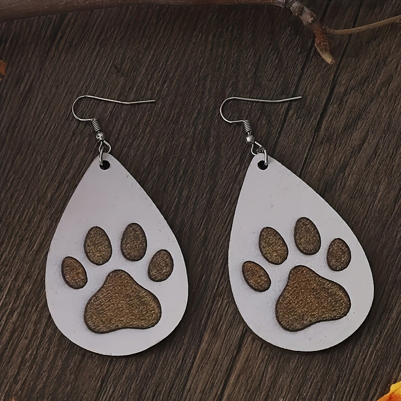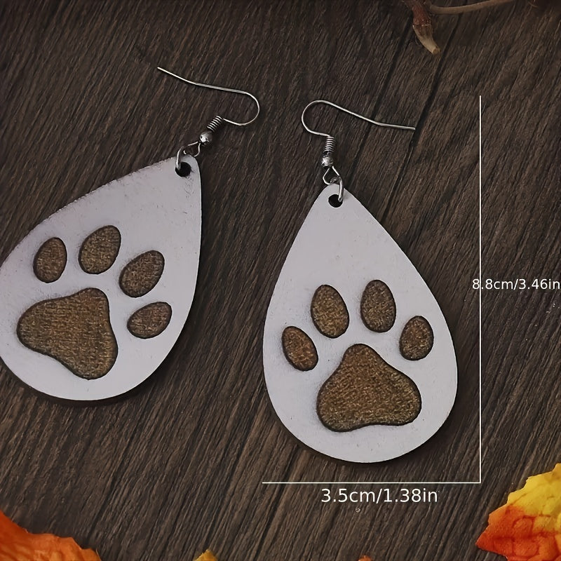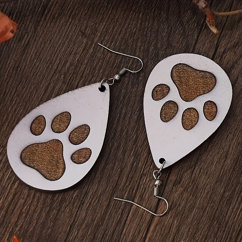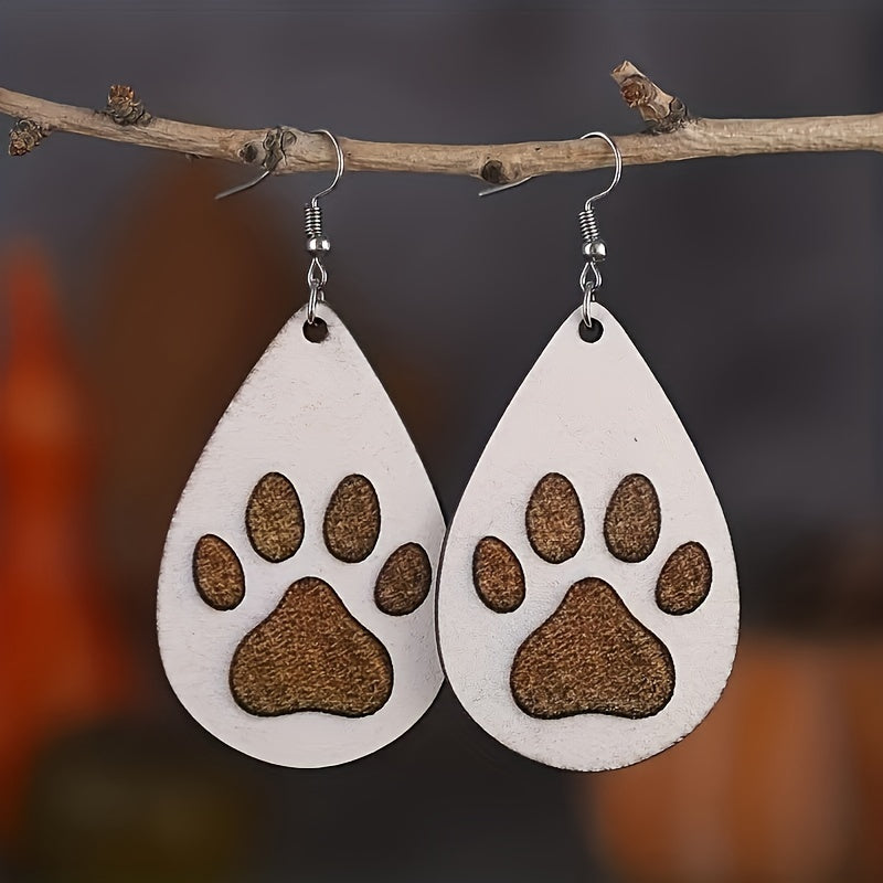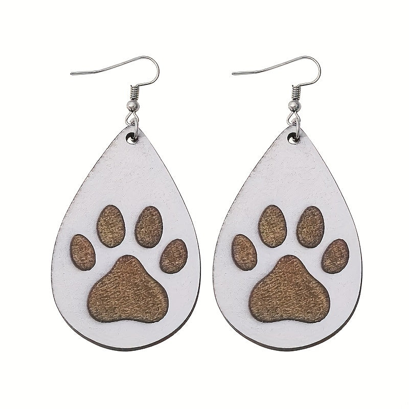 Men's Wooden Dog Paw Drop Earrings