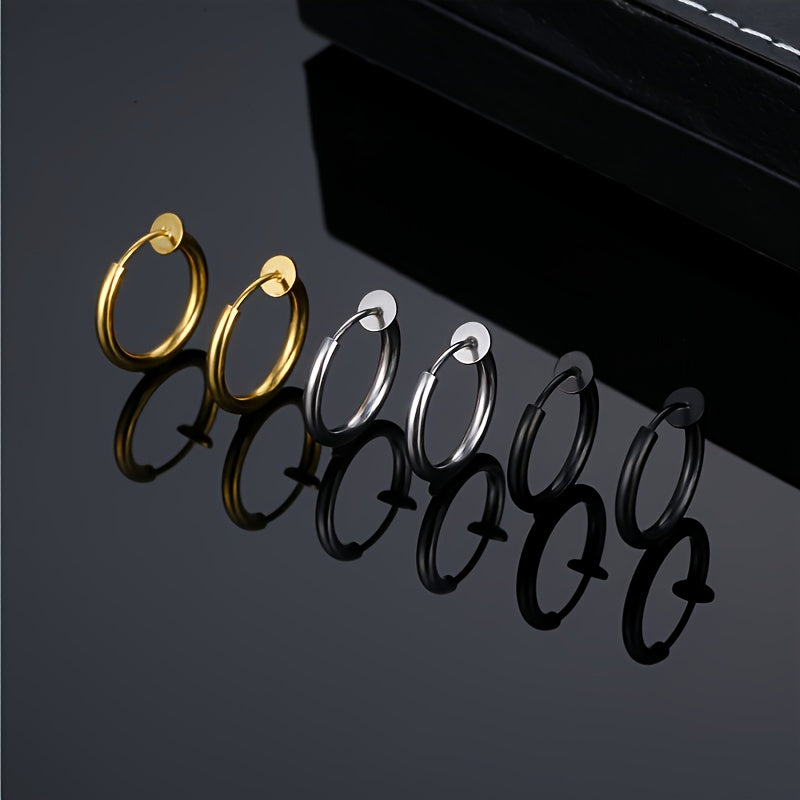 Add a touch of sophistication to your look with these round plate stainless steel earrings. Perfect for minimalist style.