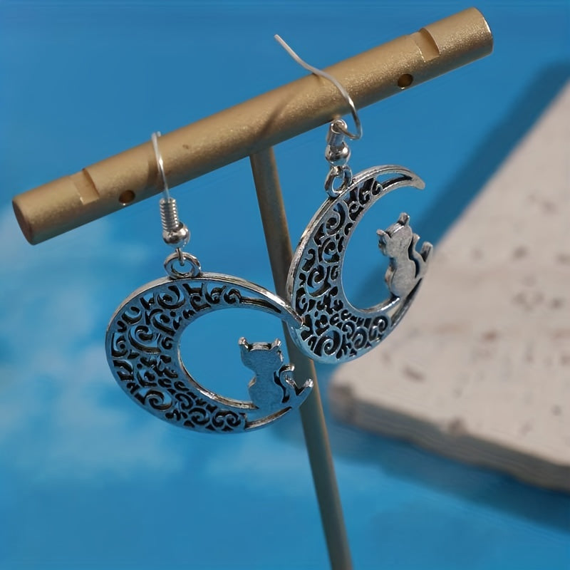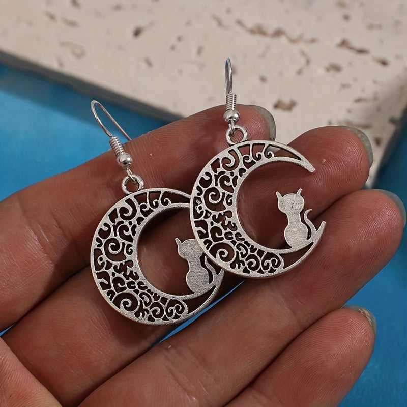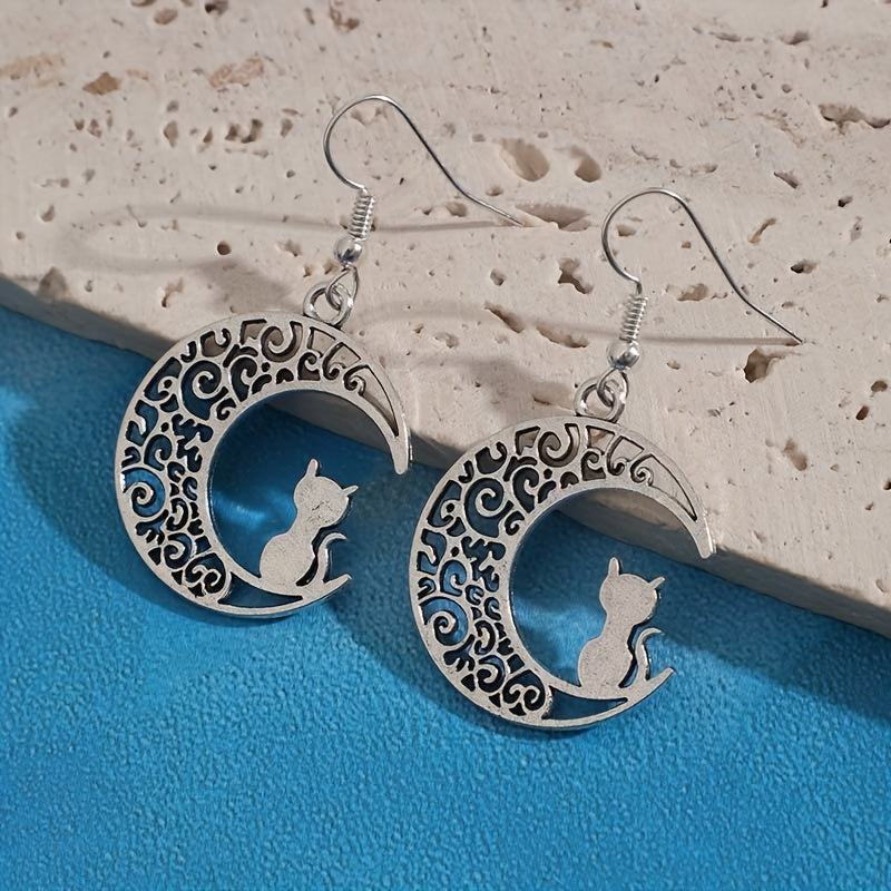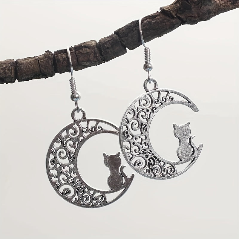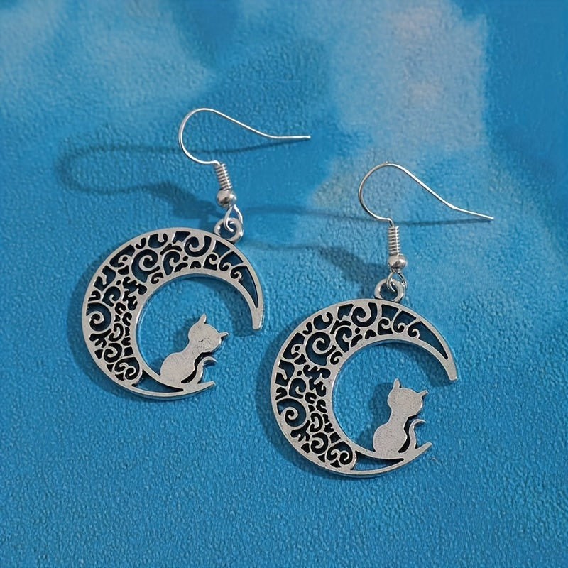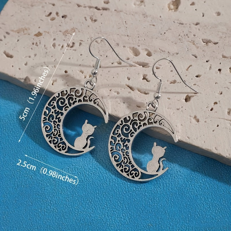 These Moon Cat earrings feature a hollow design of a crescent moon, perfect for those seeking a touch of personality. Suitable for both women and men.
