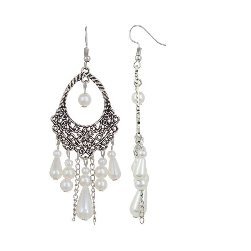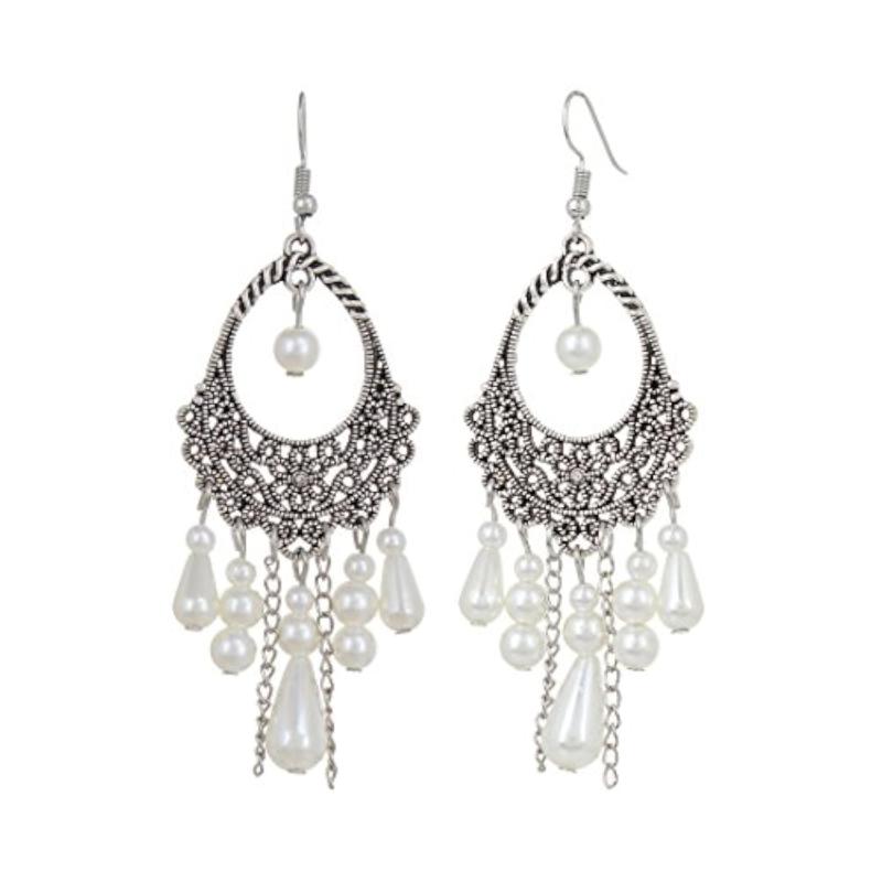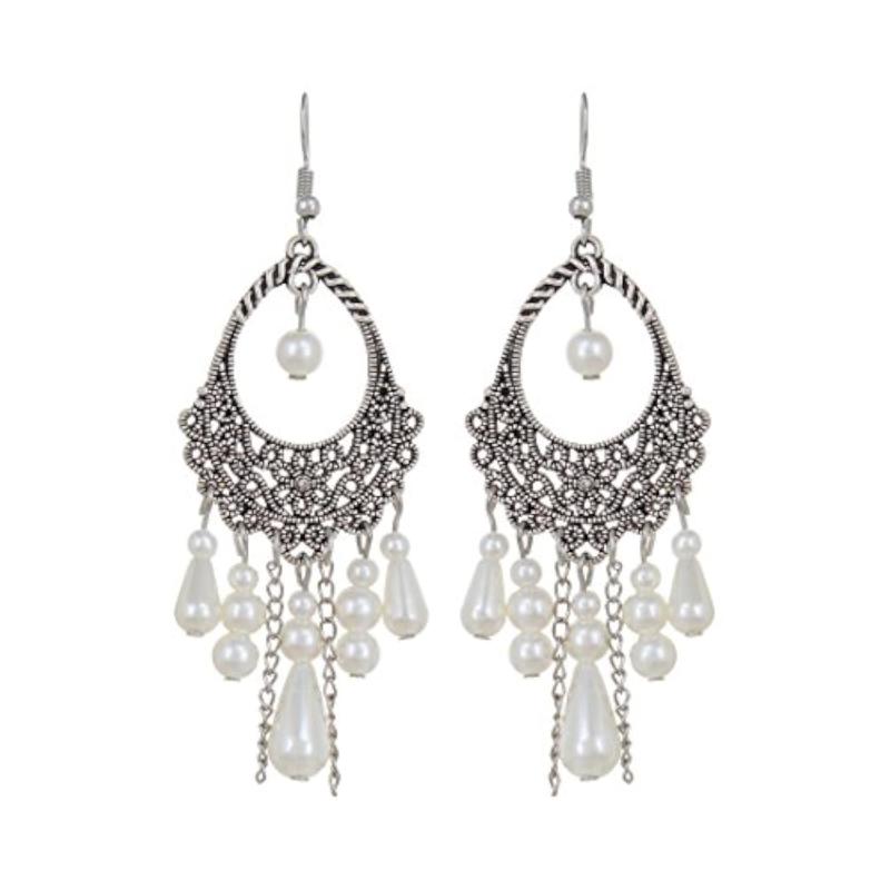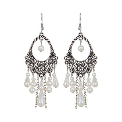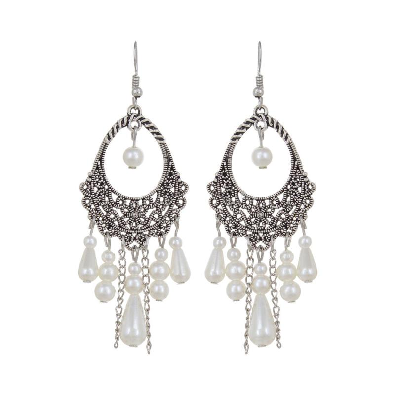 Elegant and stylish oxidised silver earrings with a touch of bohemian flair, perfect for traditional occasions.