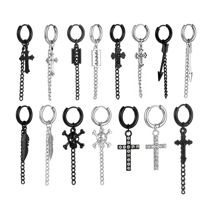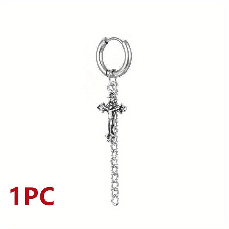This punk earring features a unique design with a feather, leaf, and skull combination. Made of stainless steel, it adds edgy style to any outfit.