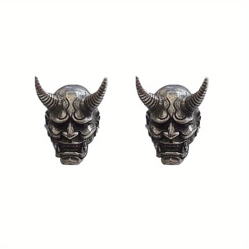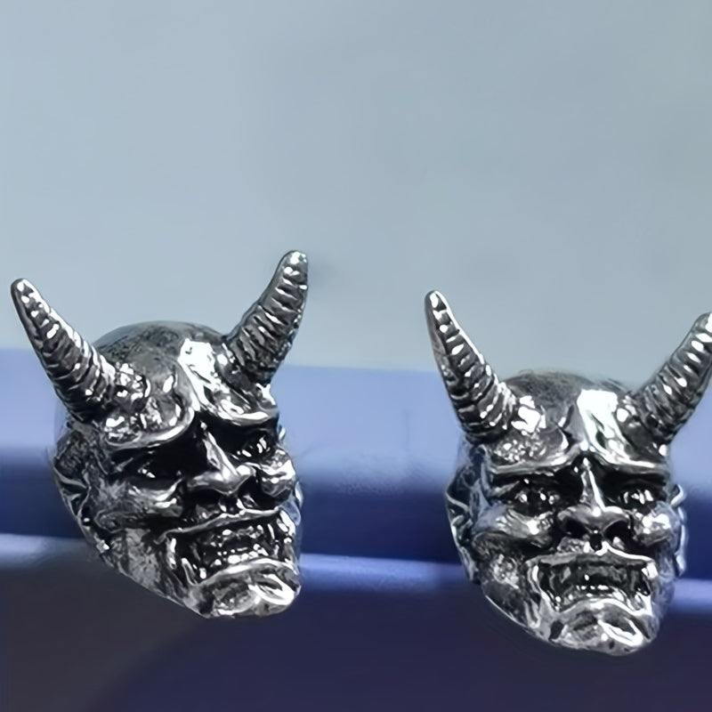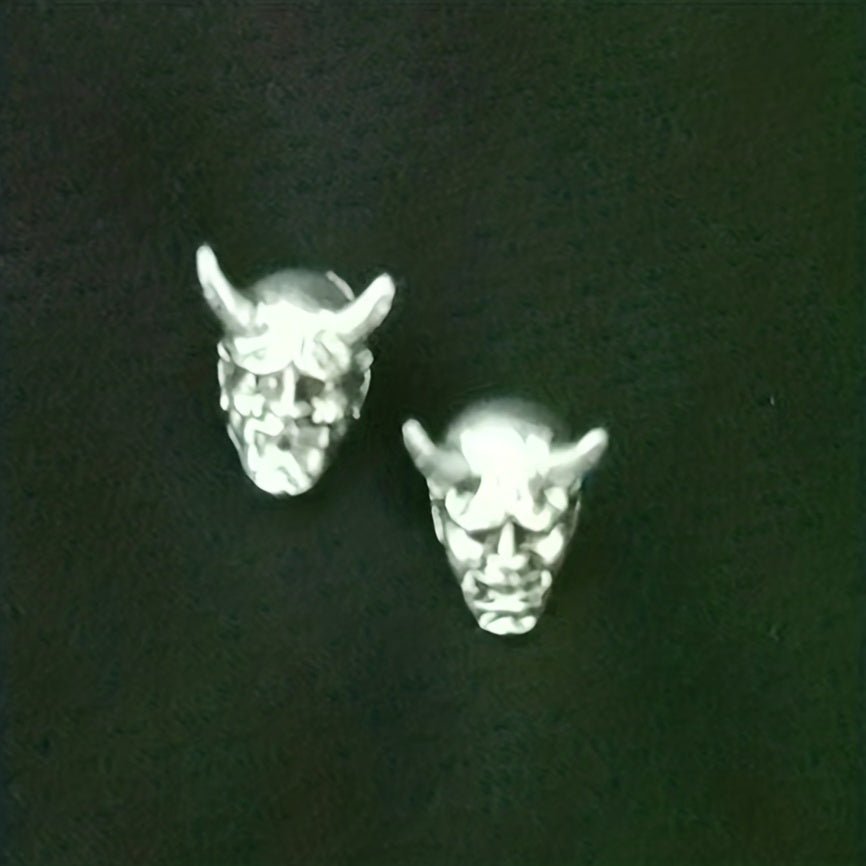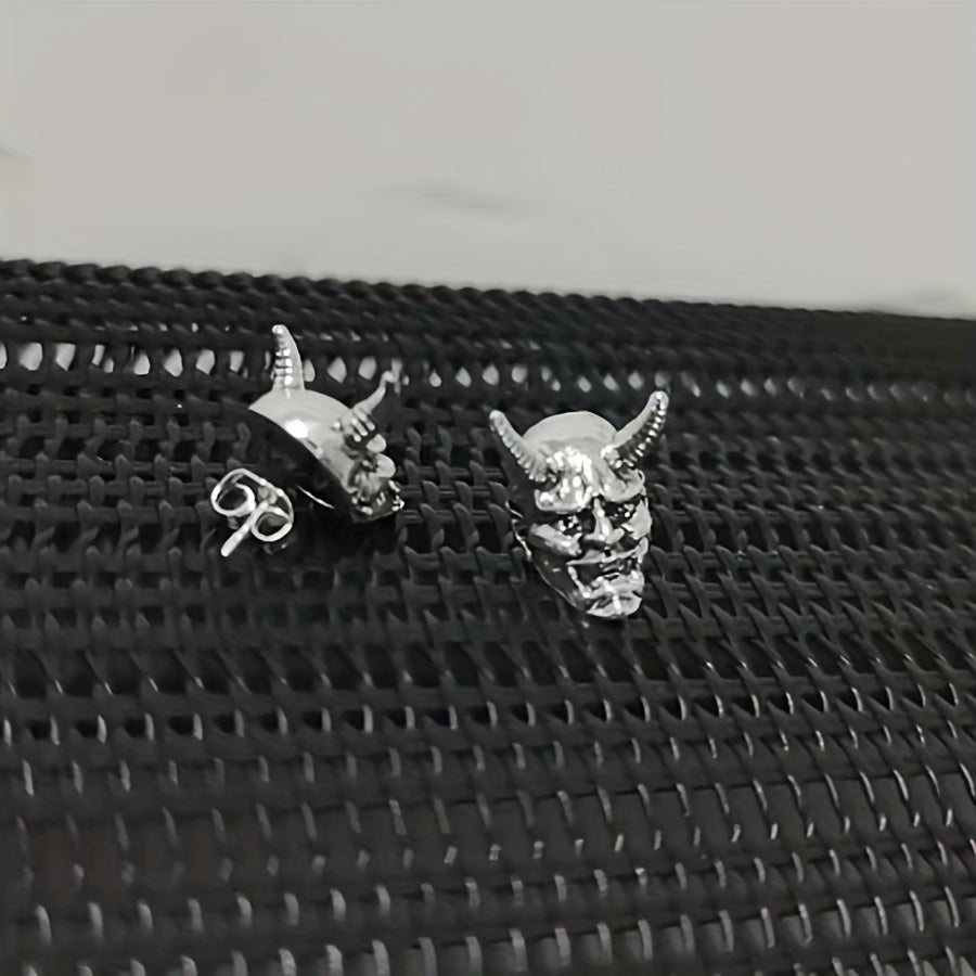 These punk stud earrings feature a haunting red face skull ghost mask design, perfect for men and women with edgy style.