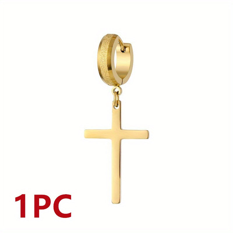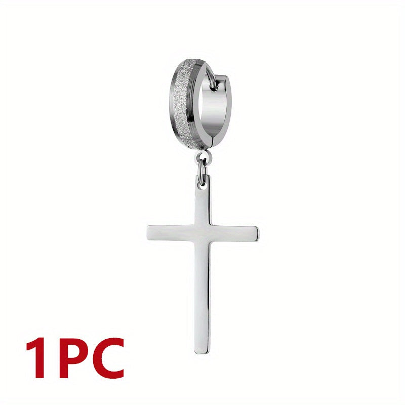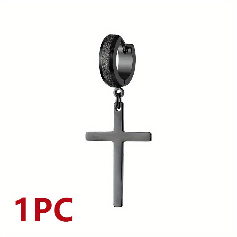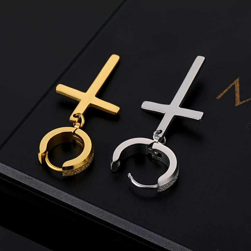 Elevate your style with these retro cross earrings made of durable titanium steel. The beveled sand pressed design adds a touch of punk flair to your outfit.