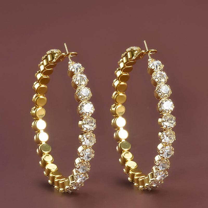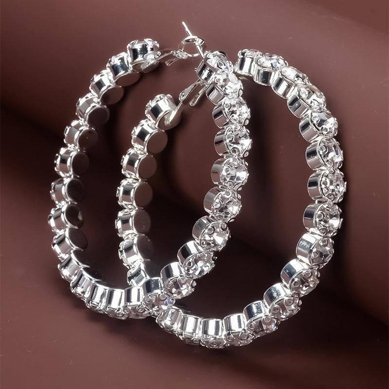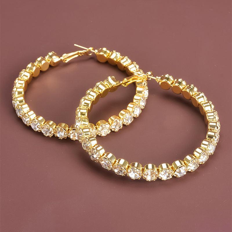 Add a touch of elegance to your look with these stunning Rhinestone Big Hoop Earrings. Perfect for bridal parties, dinners, or any special occasion.