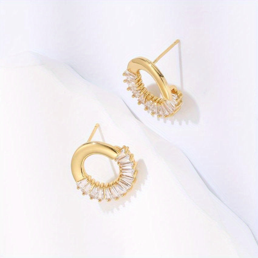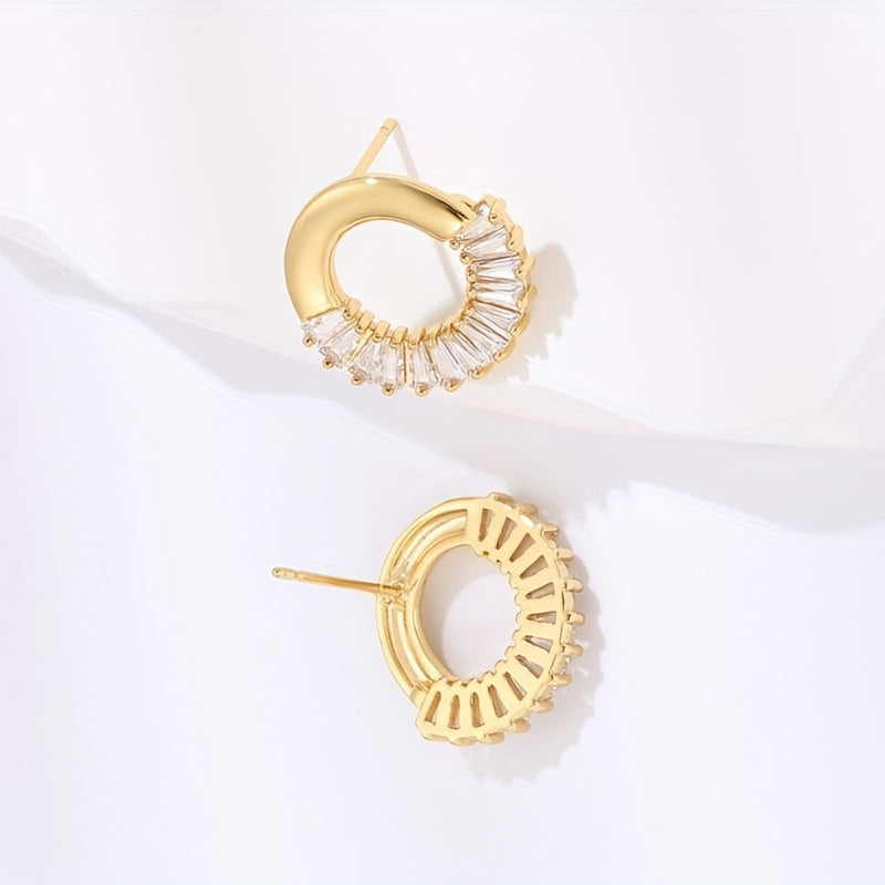 These stylish stud earrings feature a rhinestone circle design for a trendy look. Perfect for both men or couples.