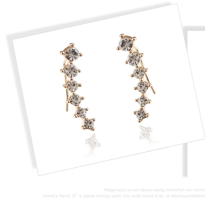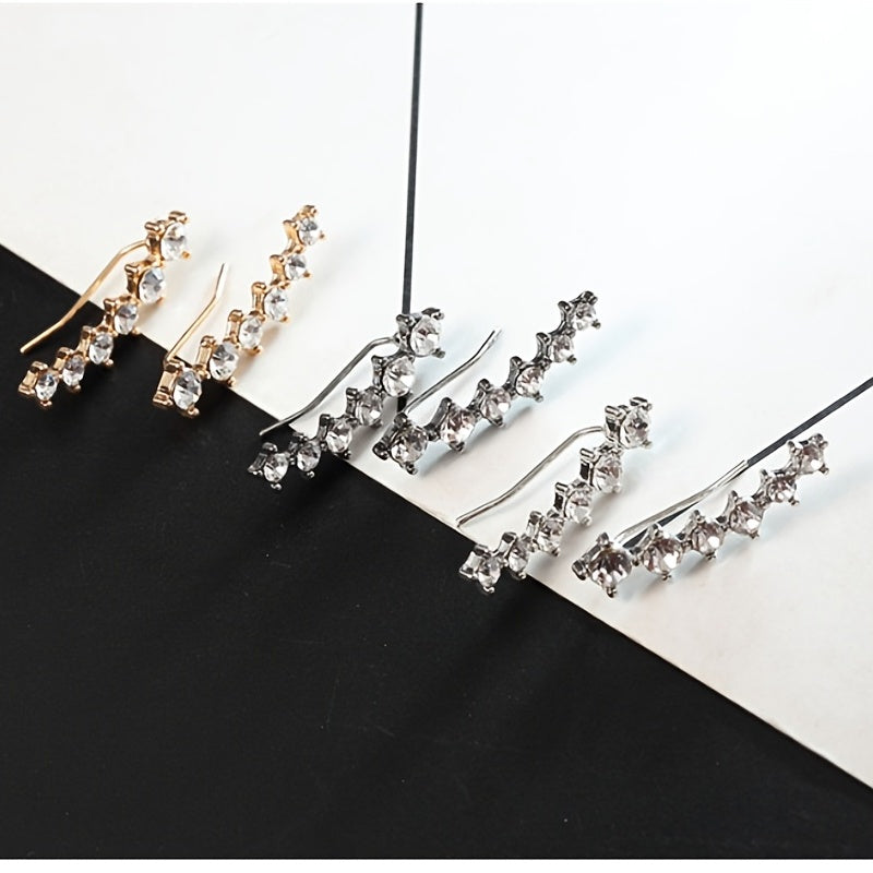 Elevate your style with these stunning rhinestone stud earrings plated with 22K gold. Perfect for adding glamour to any outfit.