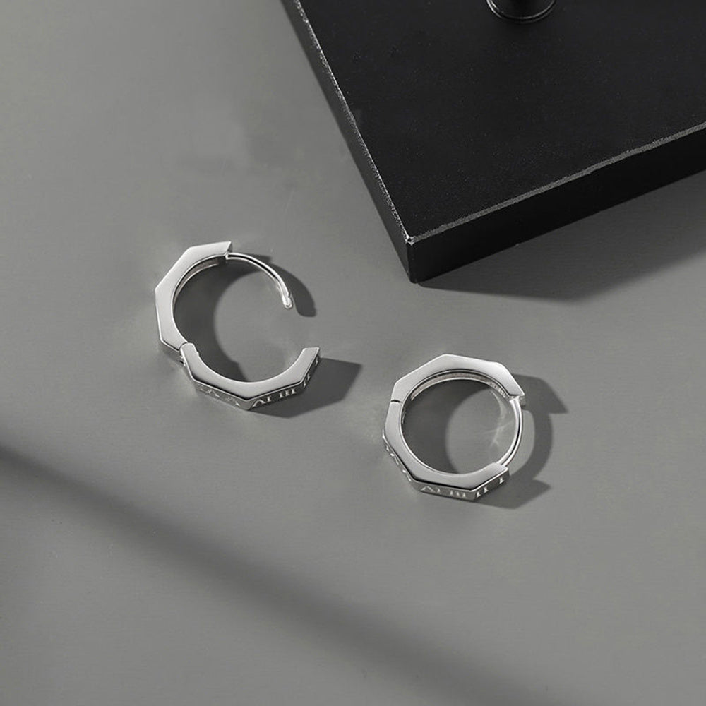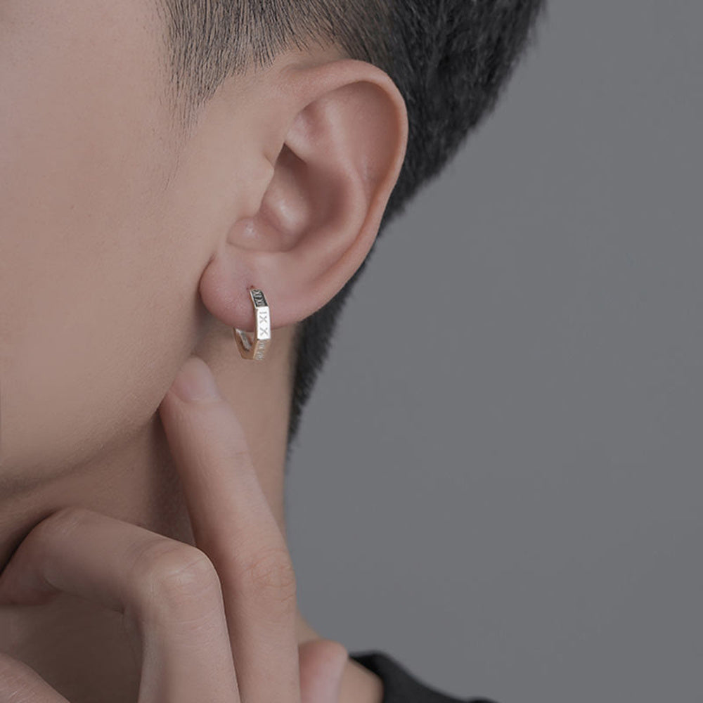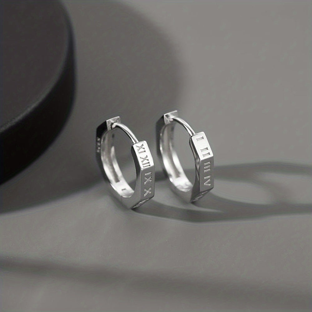 Elegant Roman numerals stud earrings designed for men in a punk style. These unique earrings add a stylish touch to your outfit.