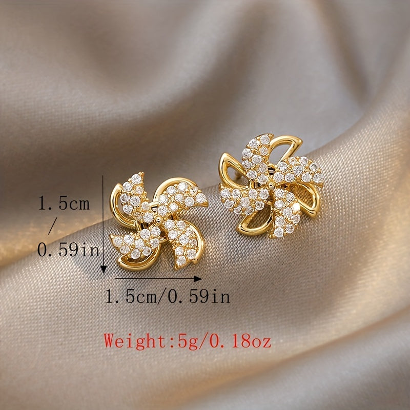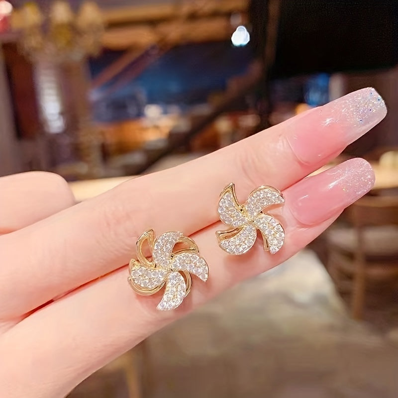 These stylish stud earrings feature a rotatable windmill design filled with sparkling rhinestones. Perfect as a gift for women and girls.