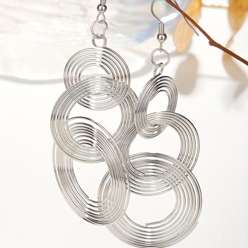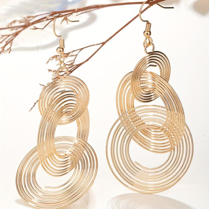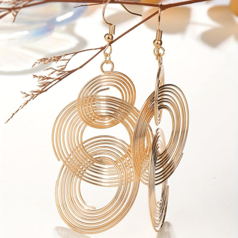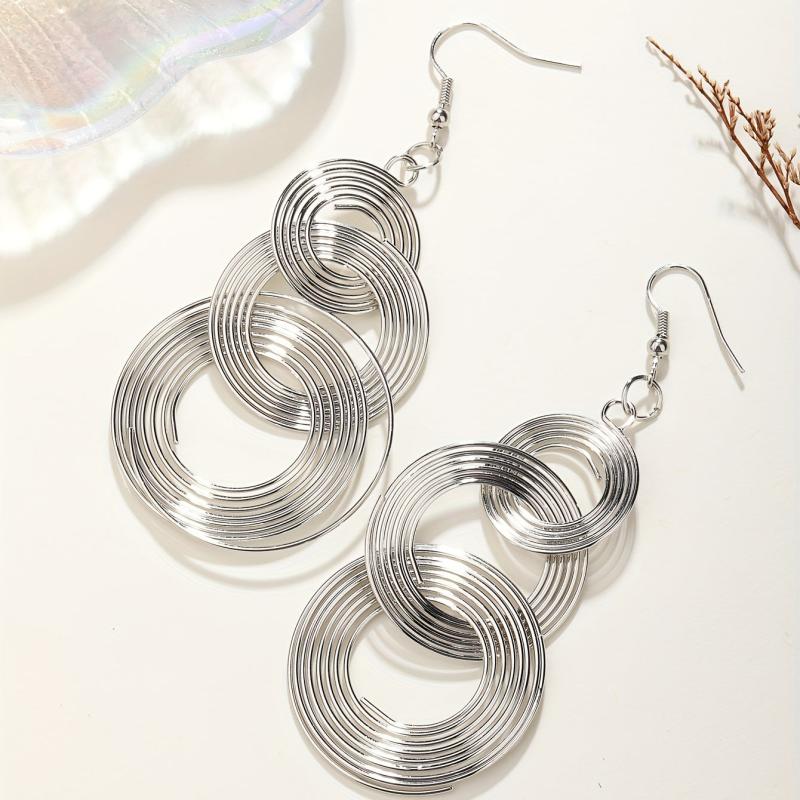Elegant round shape dangle earrings made of high-quality stainless steel. Perfect accessory for women.