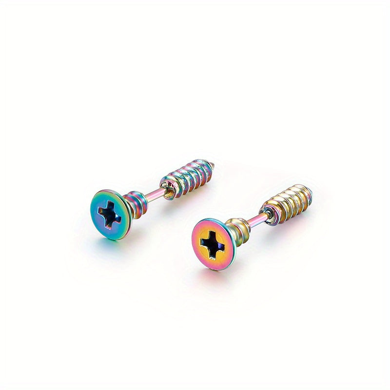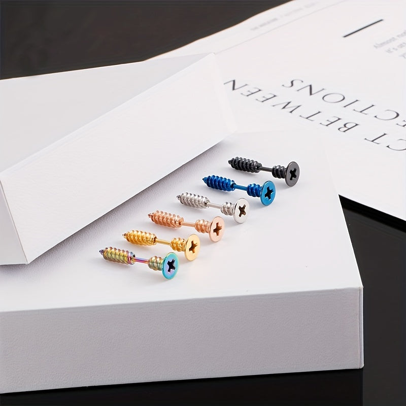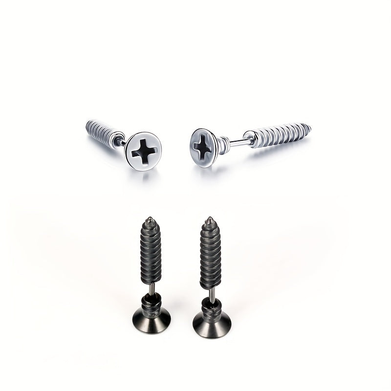 These funky punk hip hop screw shape earrings are the perfect accessories for men and women who want to add a unique touch to their look.