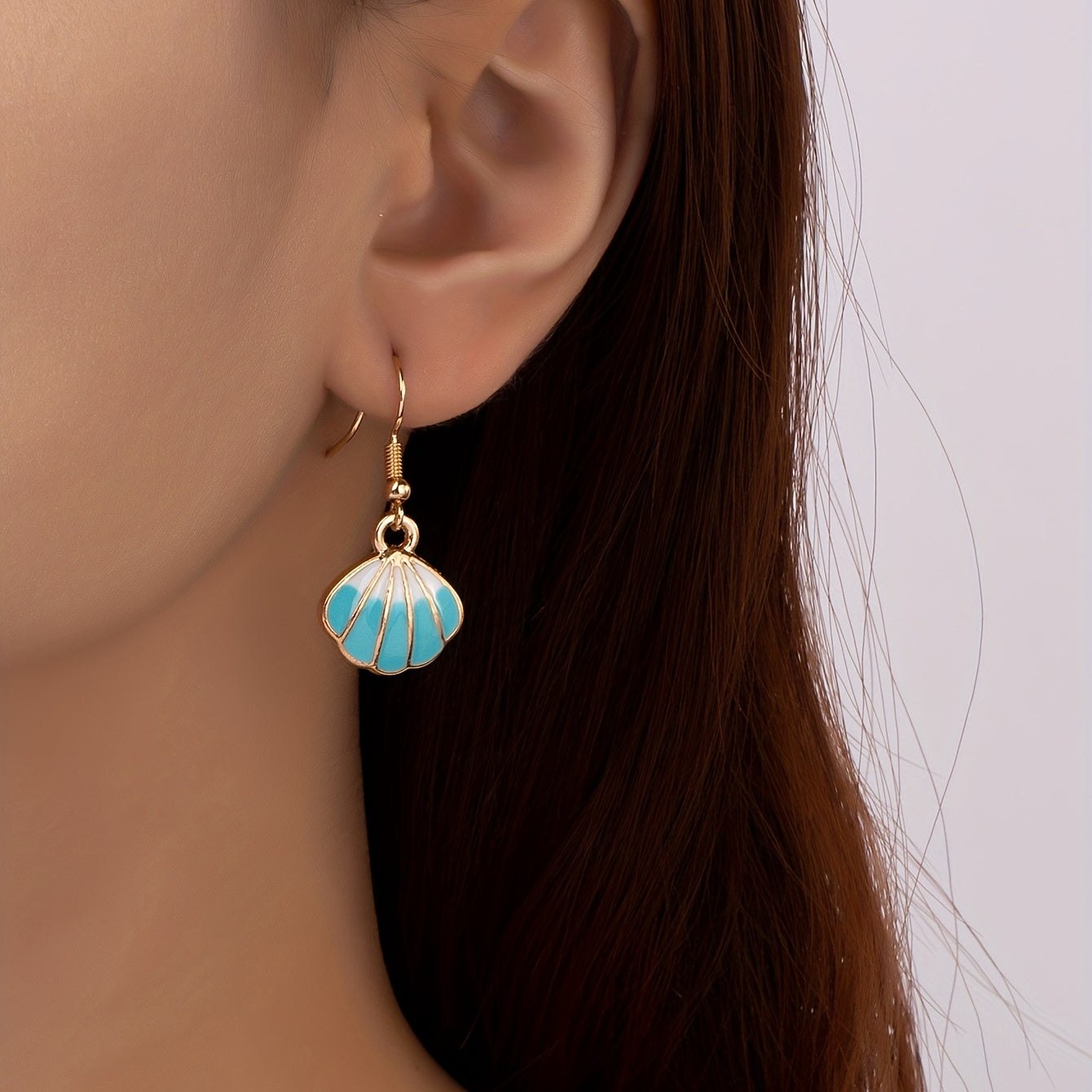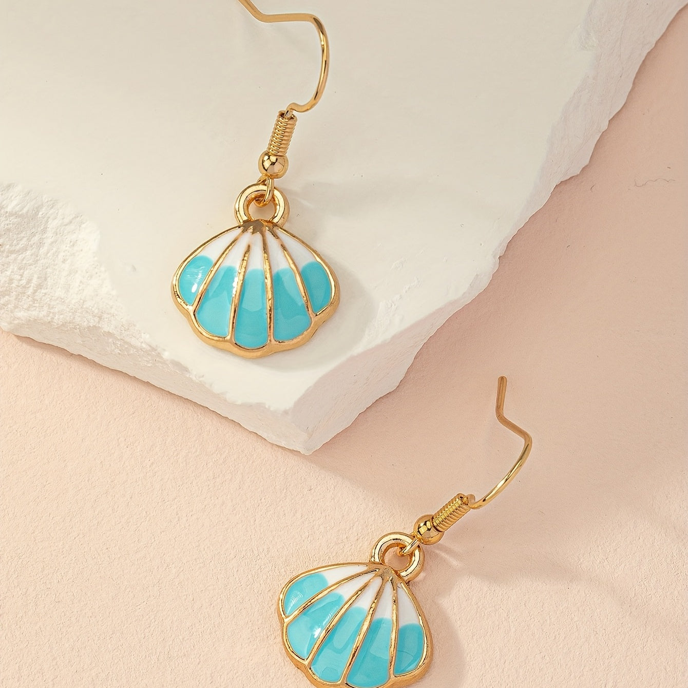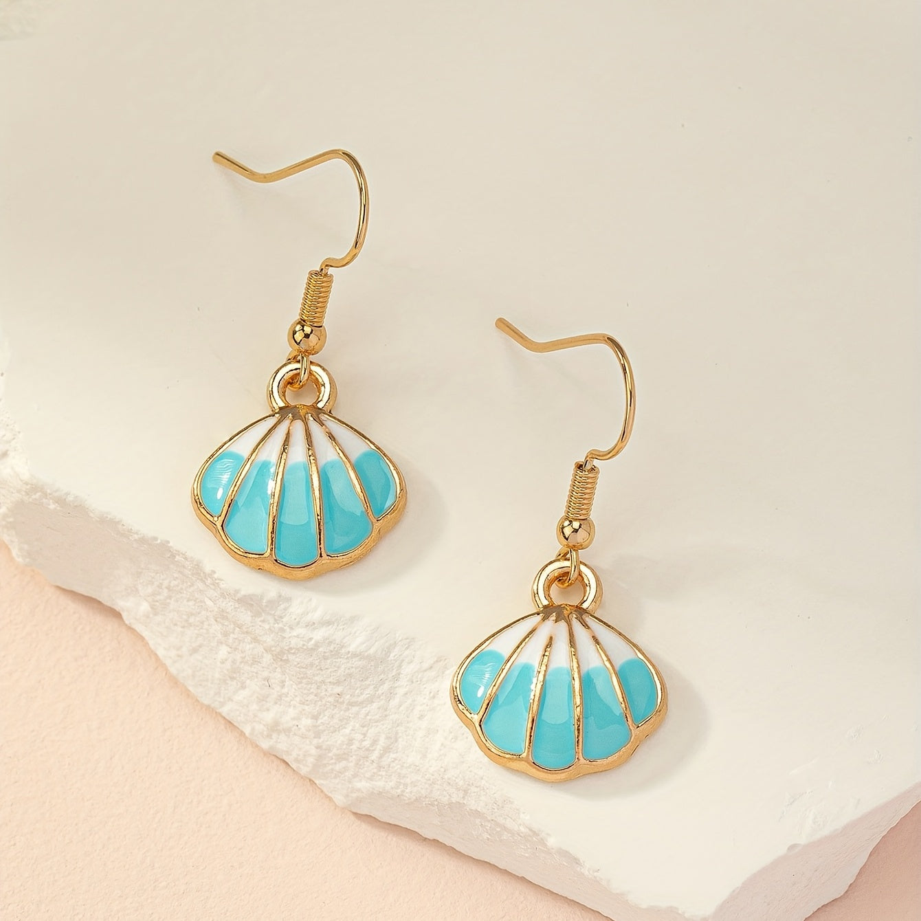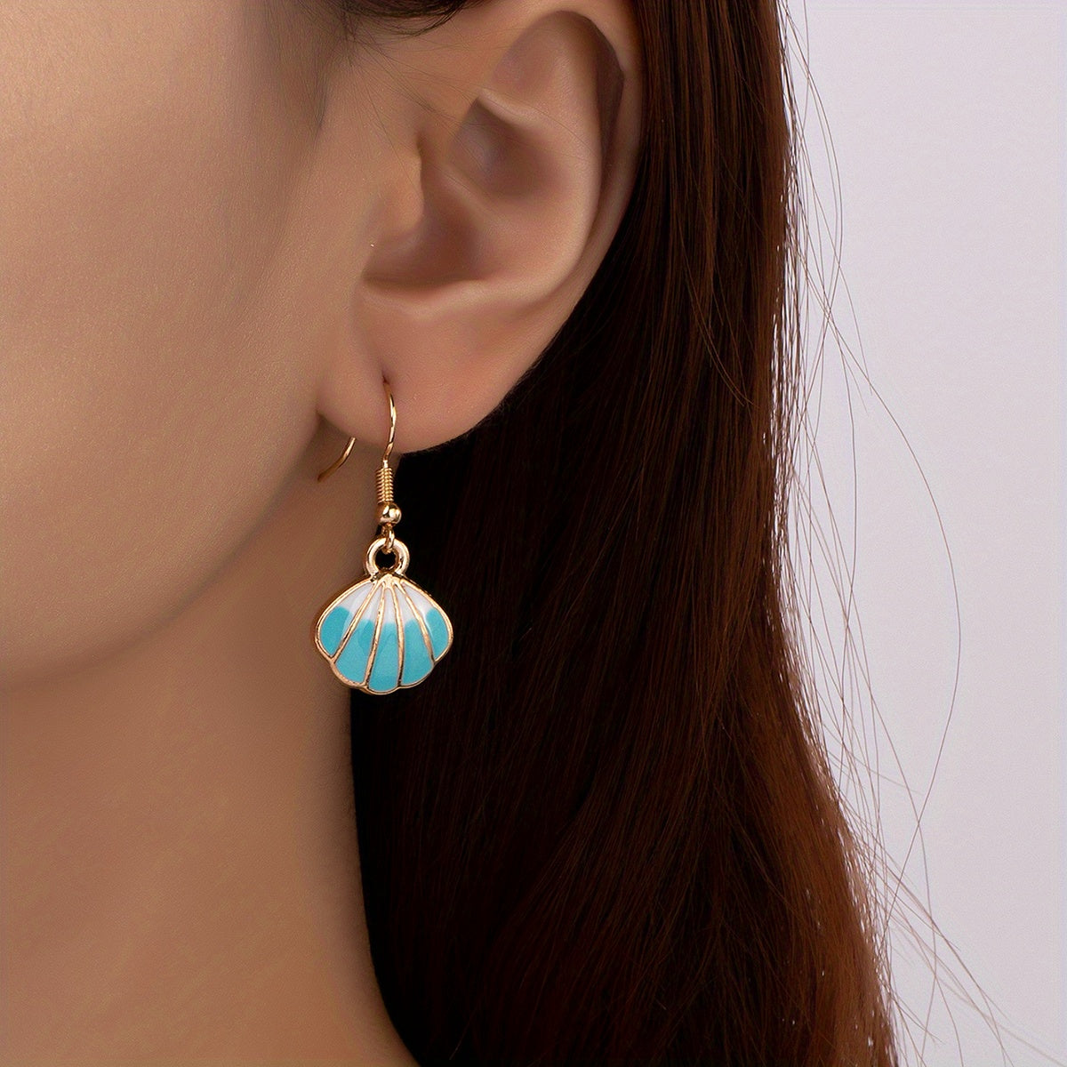 These dangle earrings feature a retro ocean style design with shells and enamel, making them a perfect gift for women.