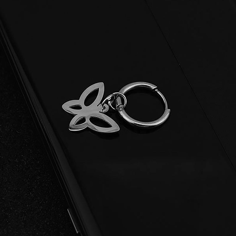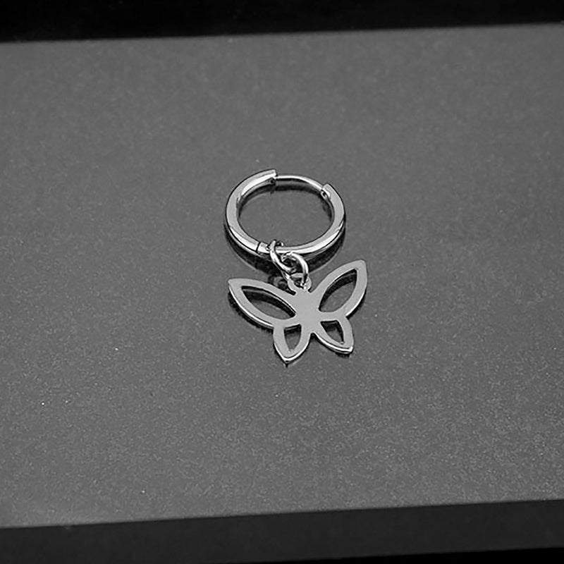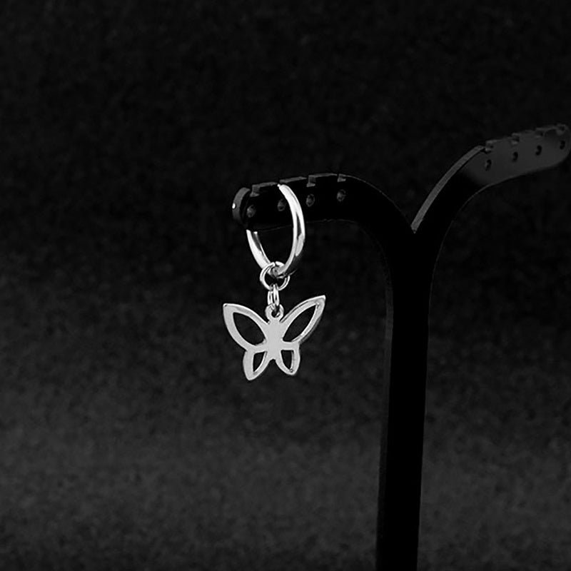 Elevate your style with this fashionable silver stainless steel earring featuring a hollow butterfly design.