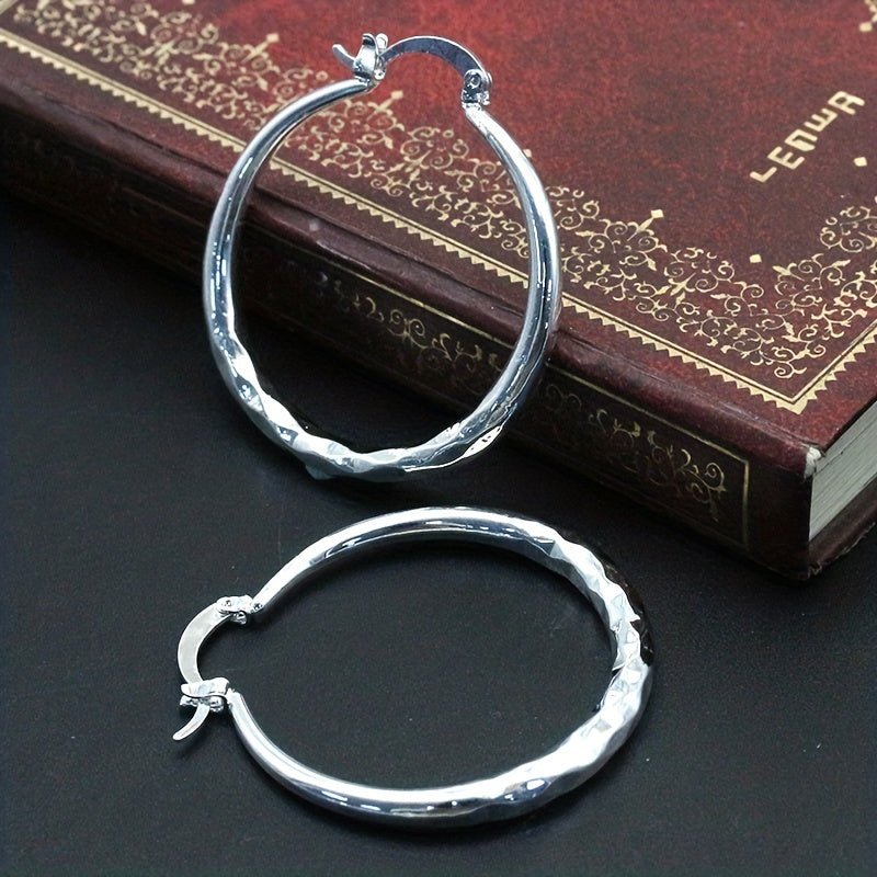 Silvery Textured Hoop Earrings Silver Plated Female Accessories 1Pair