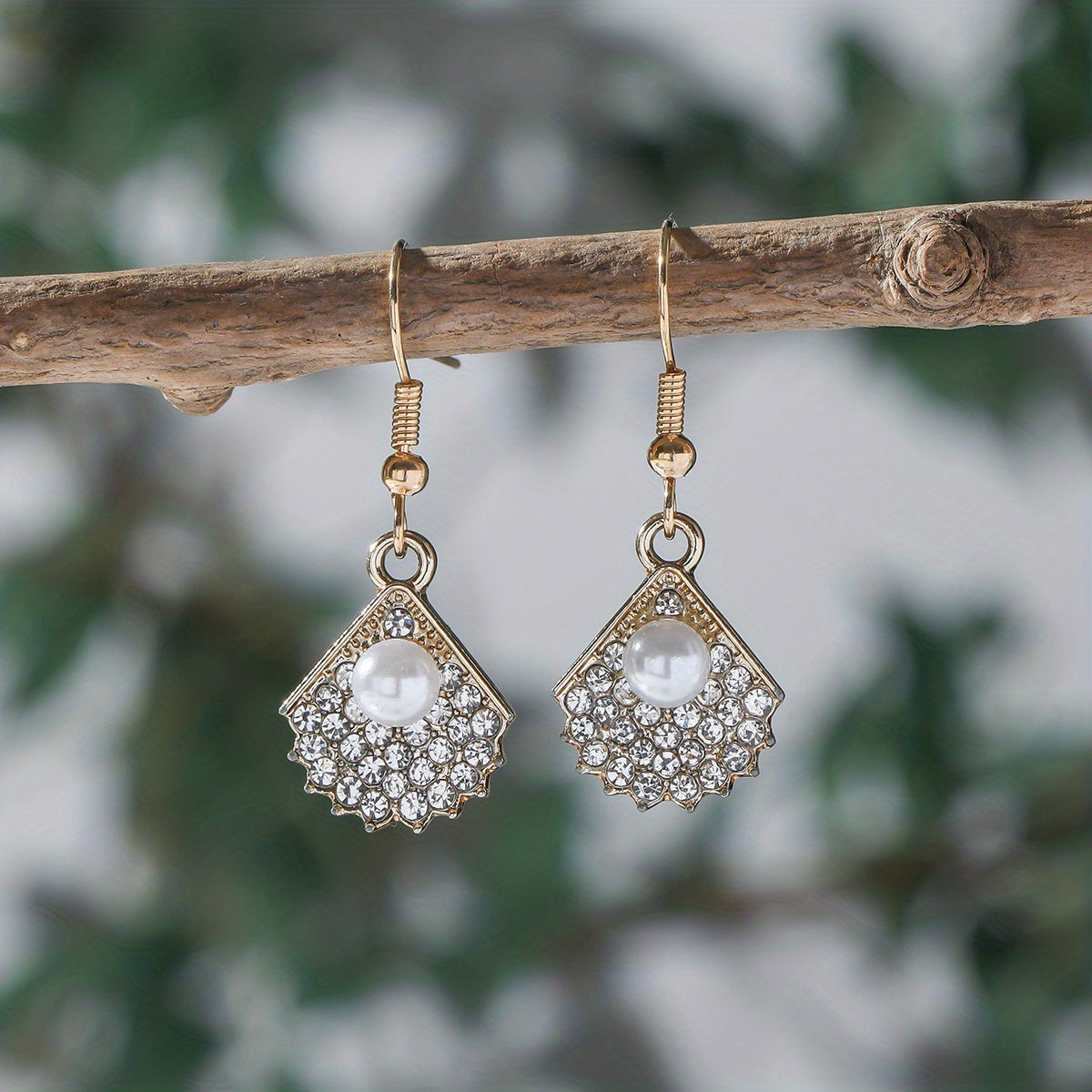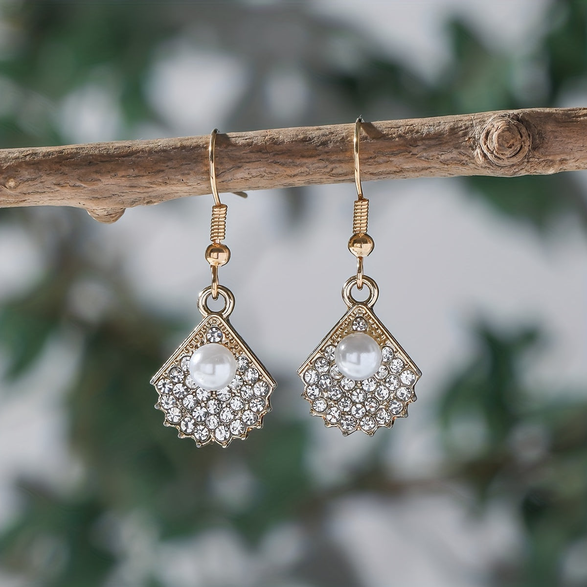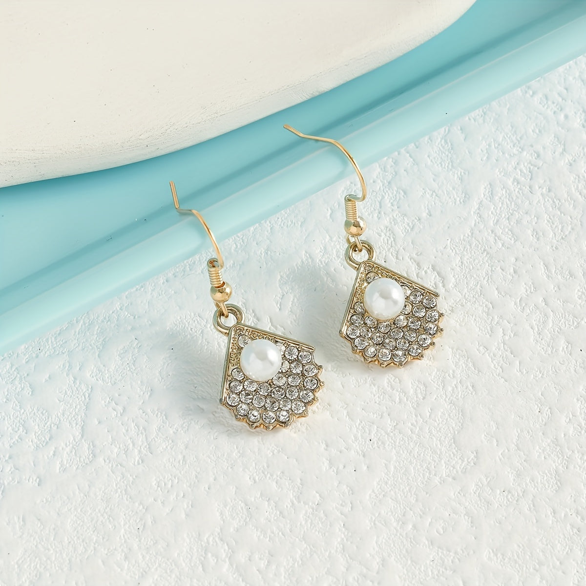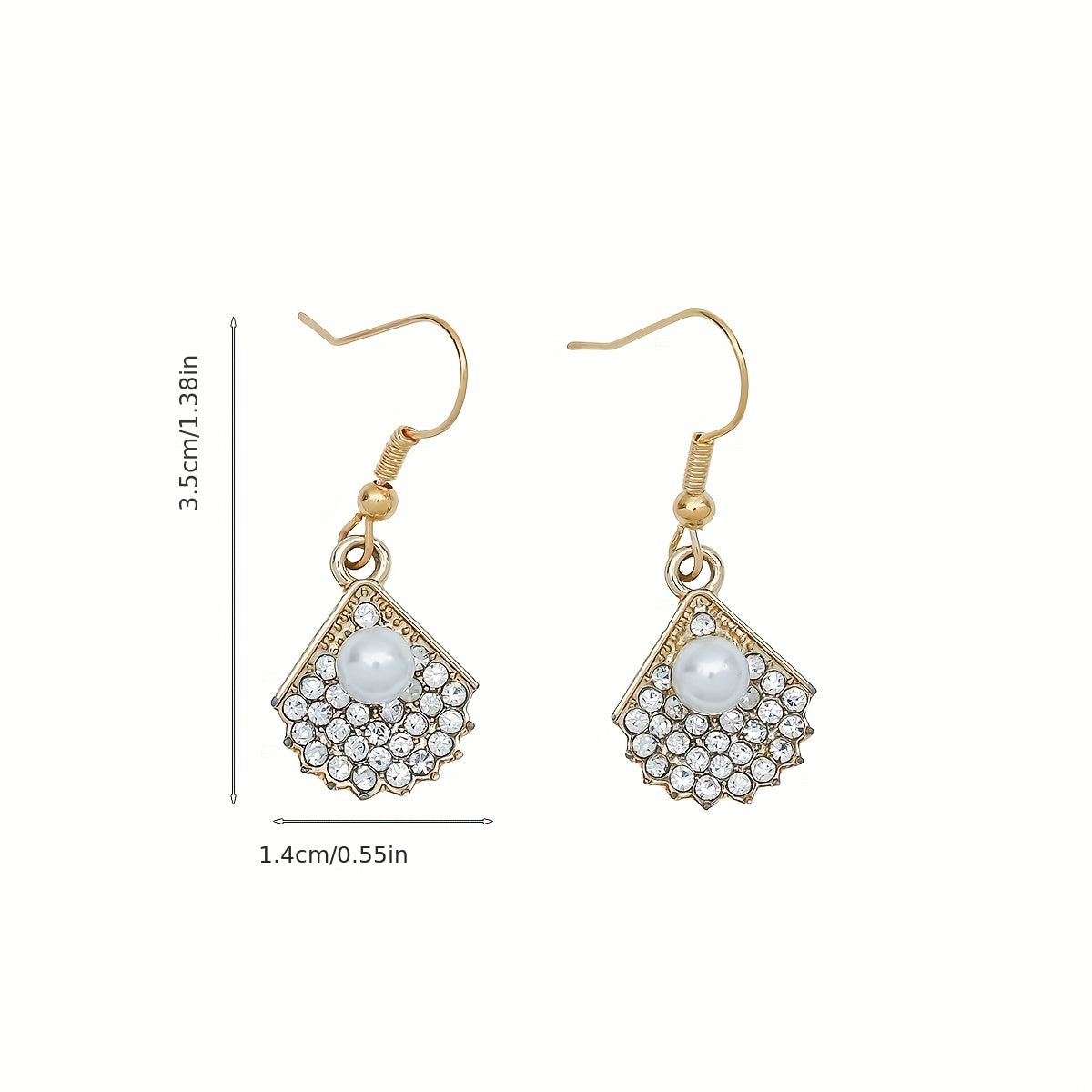 Add a touch of glamour with these sexy scallop-shaped earrings featuring sparkling rhinestones and faux pearls. Perfect for any occasion or as a gift for a special woman.