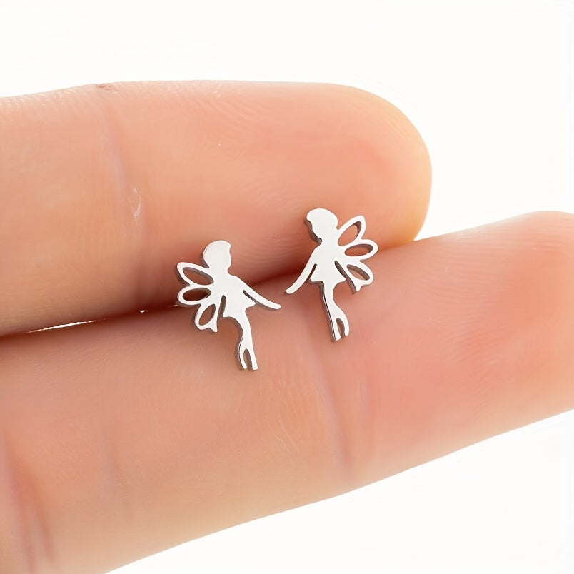 Add a touch of style with these sleek stainless steel angel earrings designed for men.