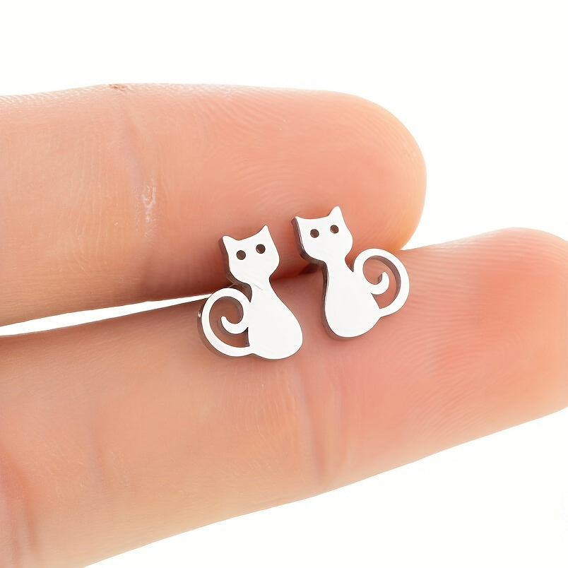 Add a touch of personality and style to your look with these stainless steel cat ear studs. Perfect for cat lovers or those who appreciate unique accessories.