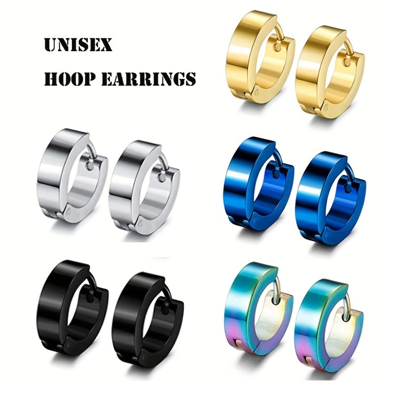 Get the perfect punk look with these fashionable stainless steel hoop earrings designed for men. Ideal for any occasion and a great addition to your style.