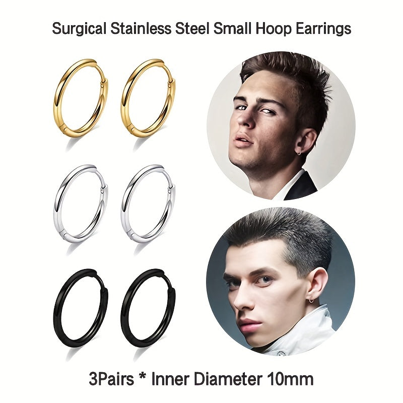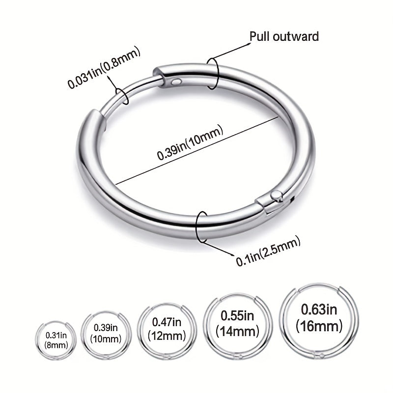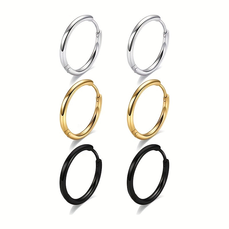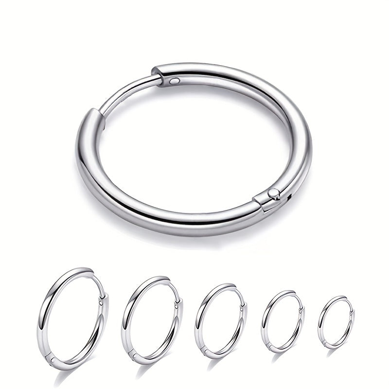 This set includes 5 different sizes of stainless steel hoop earrings suitable for daily wear. They are perfect for men and women alike.