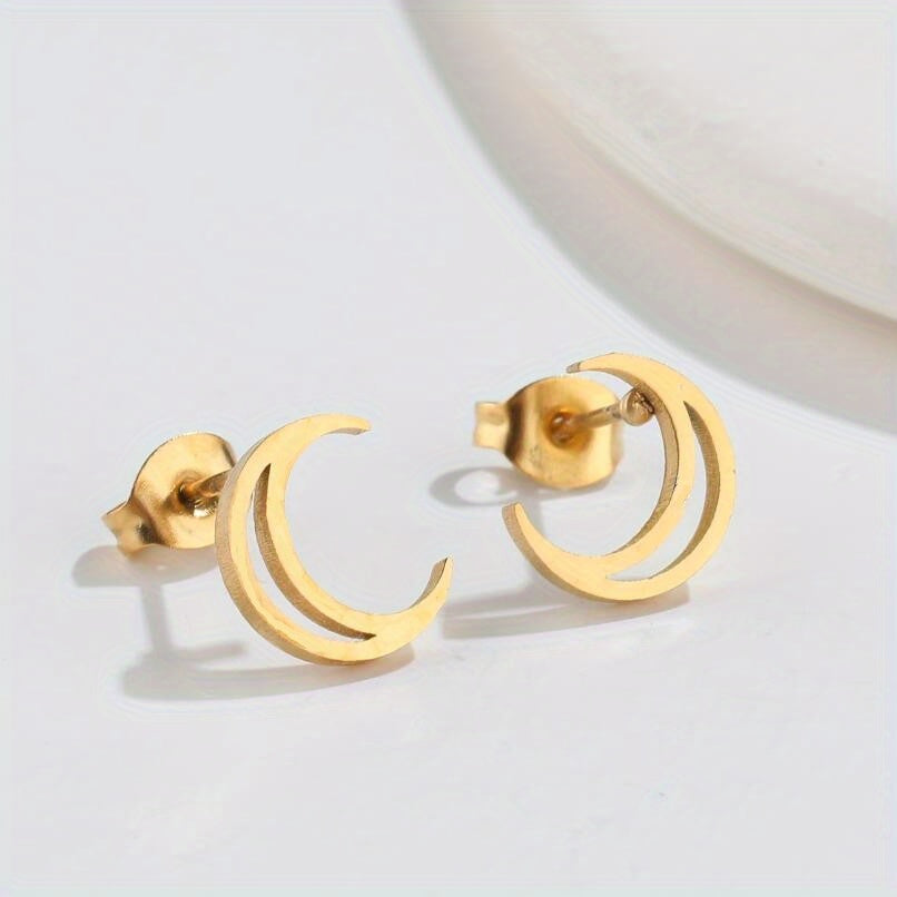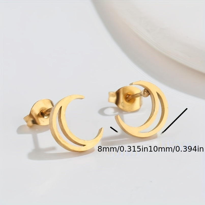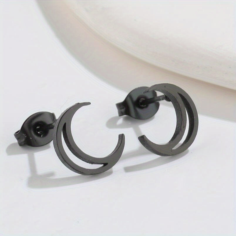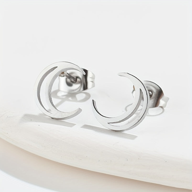 These stylish moon stud earrings are crafted from stainless steel, perfect for weddings and parties. Suitable for men.