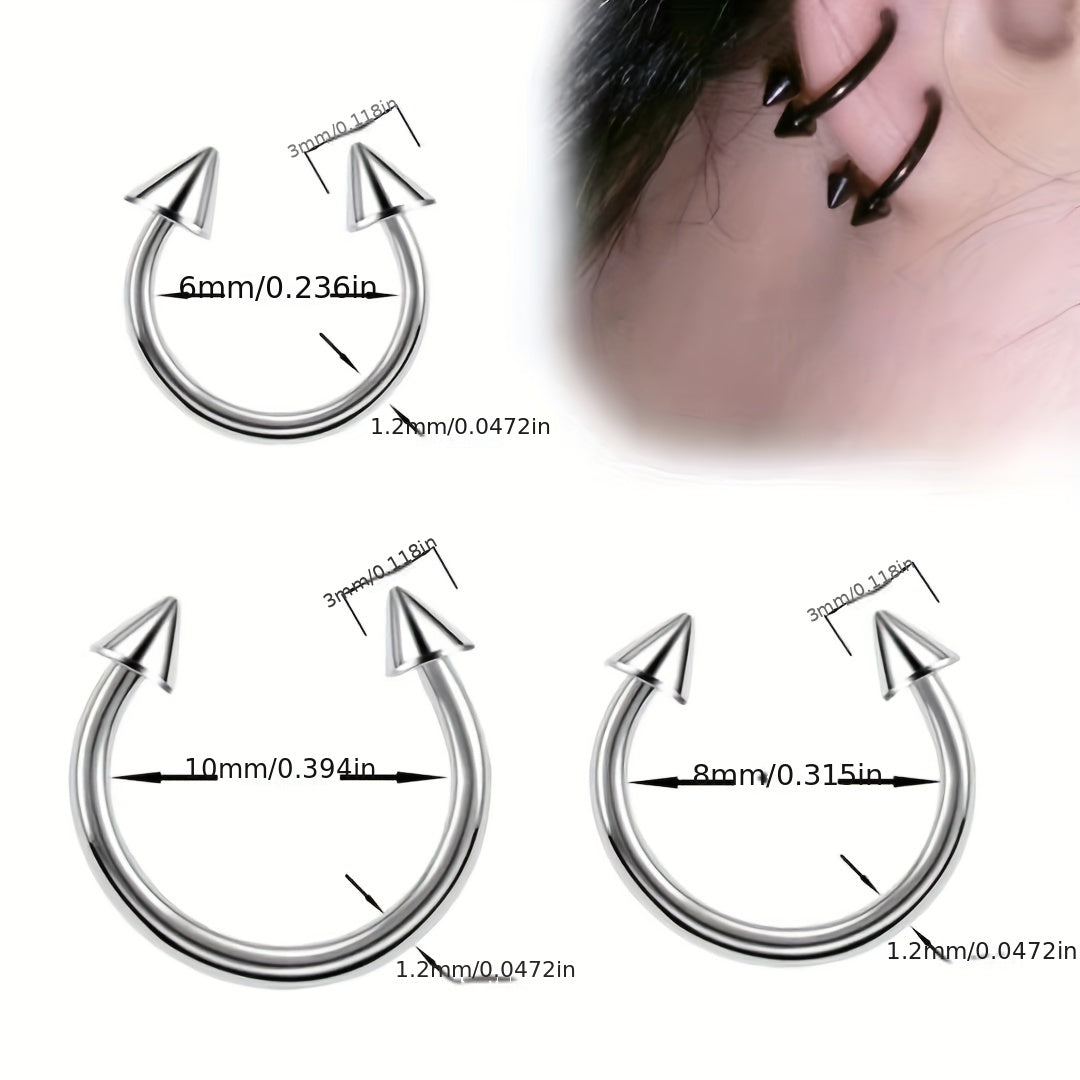 Get this stylish stainless steel nose ring that can also be used as a lip or earrings ring. The C-shaped design with sharp hooves adds an edgy touch to your accessories.