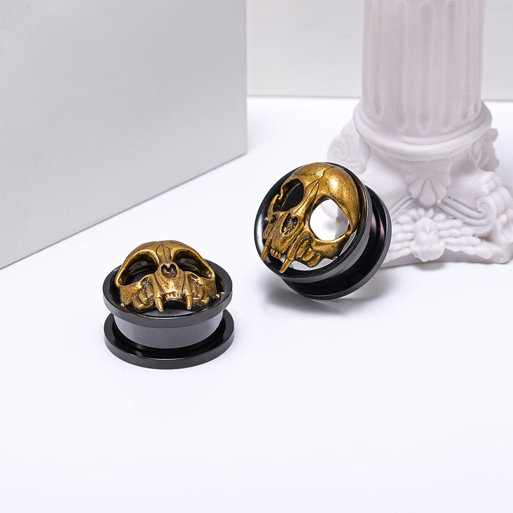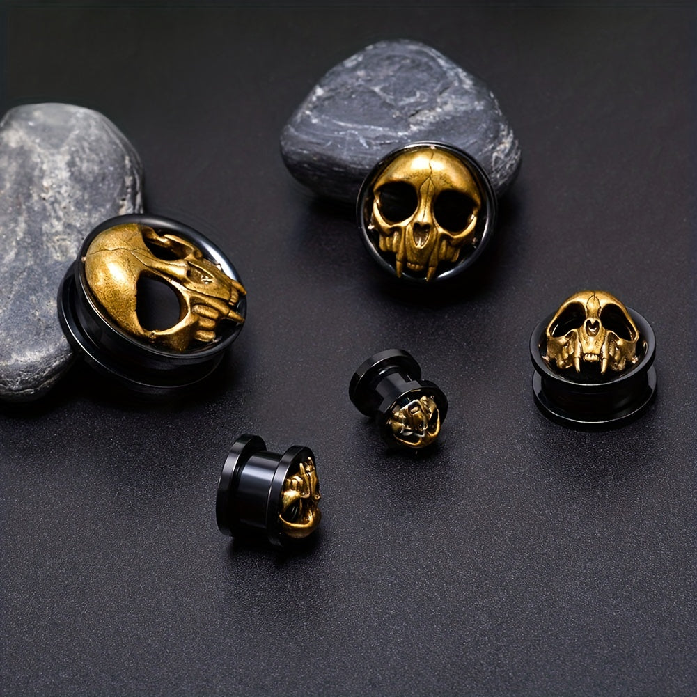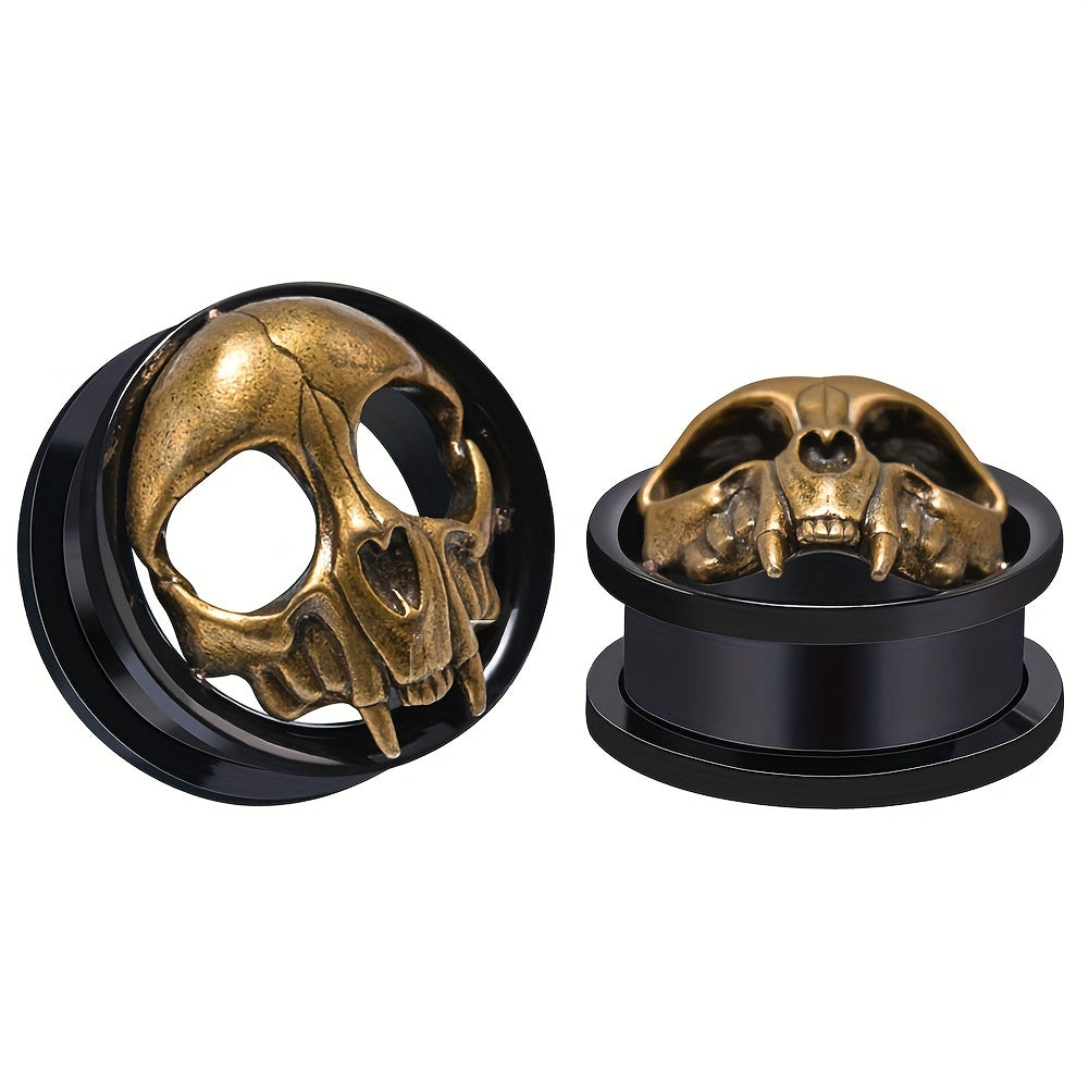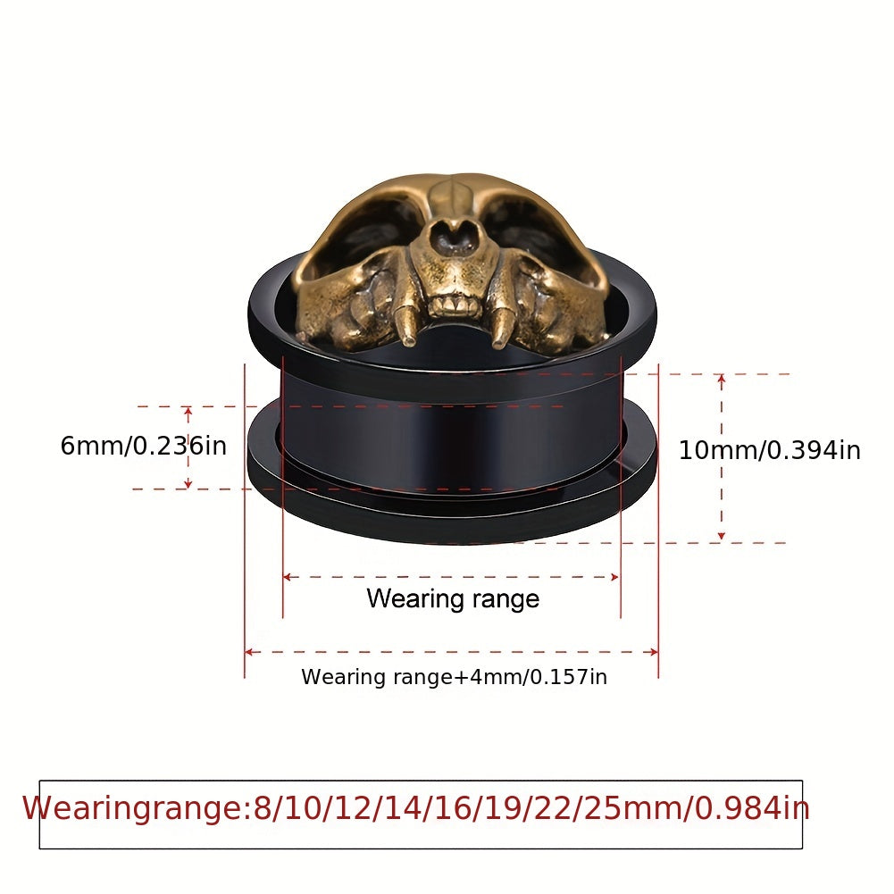 Get noticed with these fashionable stainless steel skull ear plugs. Perfect for Halloween or daily wear. Anti-allergy material safe for sensitive ears.