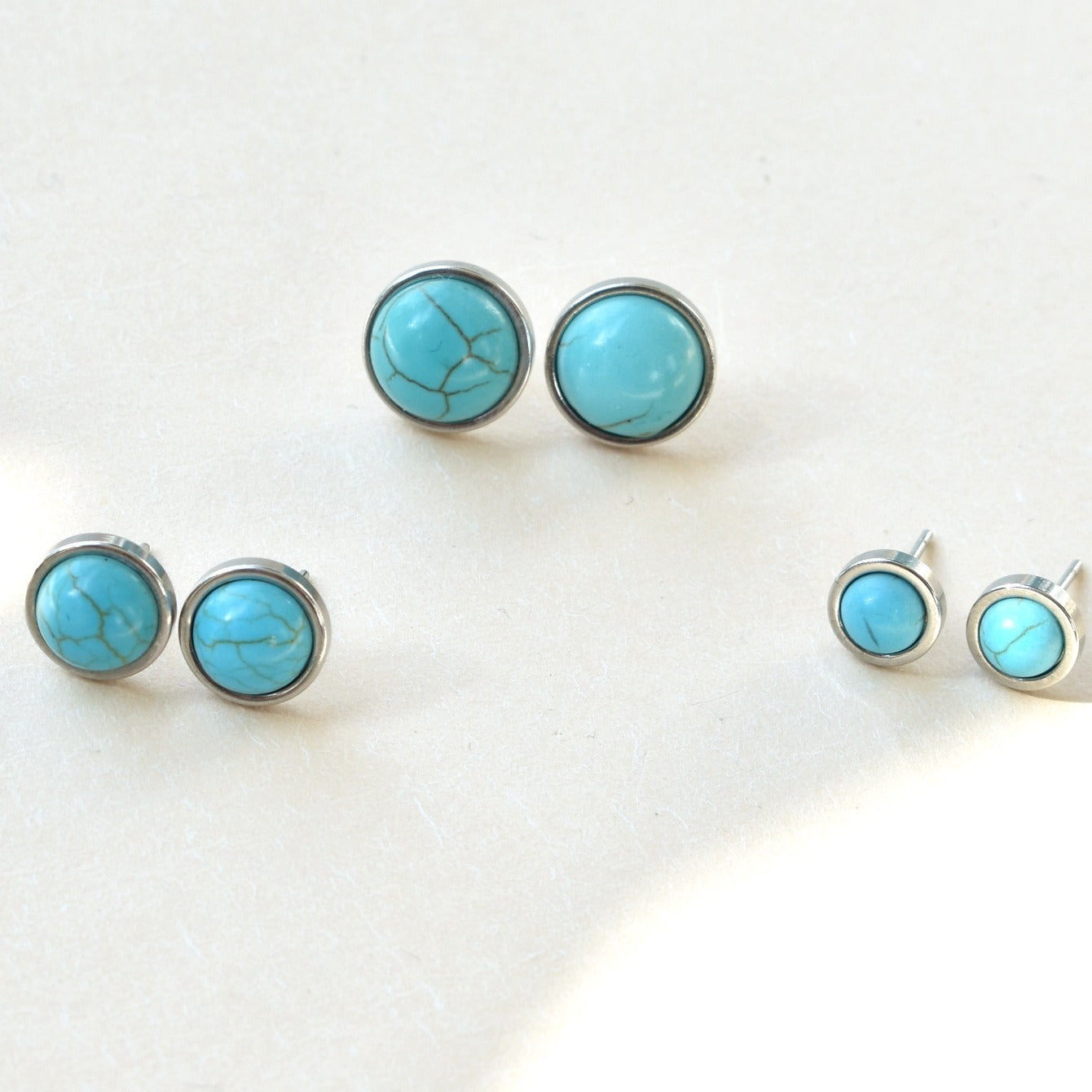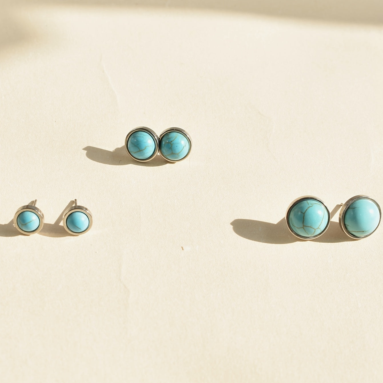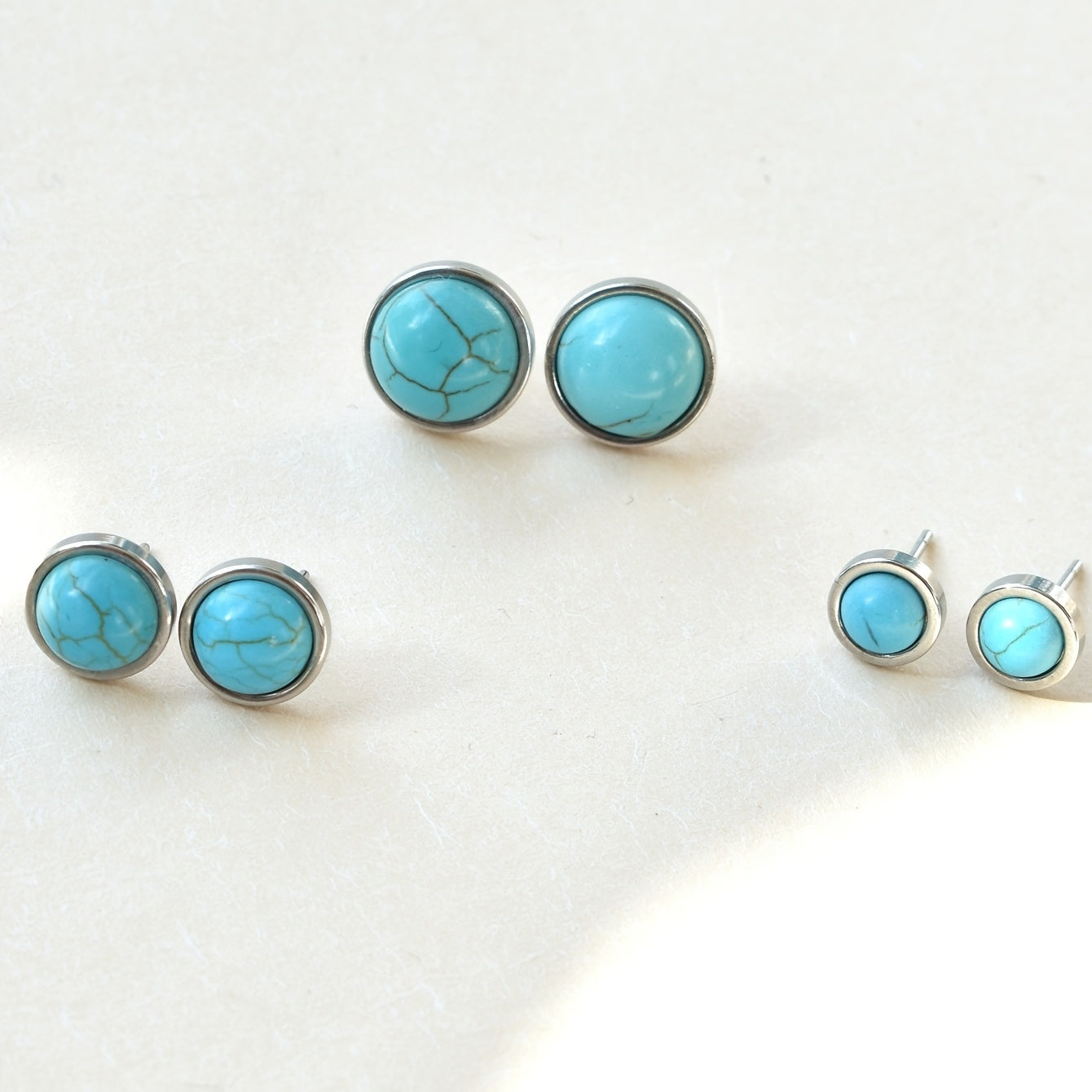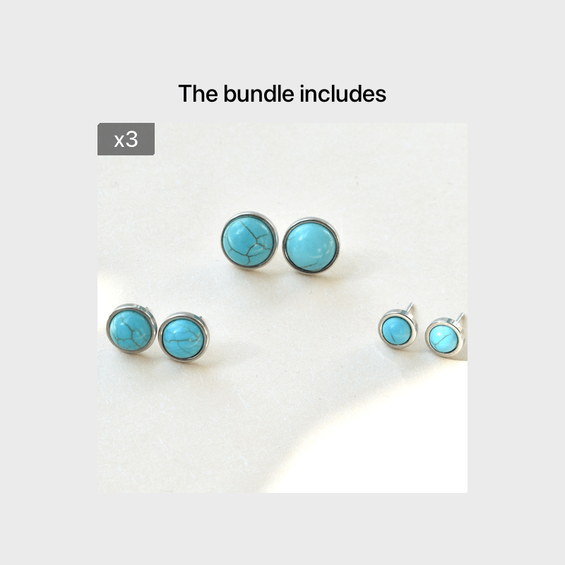 This set includes 3 pairs of stainless steel stud earrings featuring beautiful stone accents. Perfect for everyday wear or special occasions.