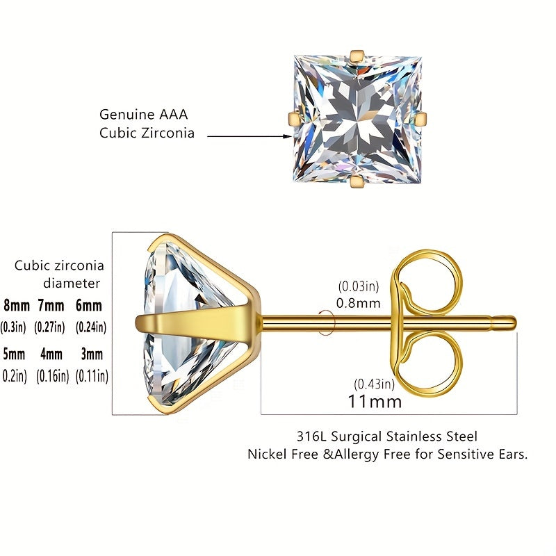 Enhance your style with these stainless steel stud earrings featuring 14K gold plating and zircon accents. Perfect for men's jewelry collection.