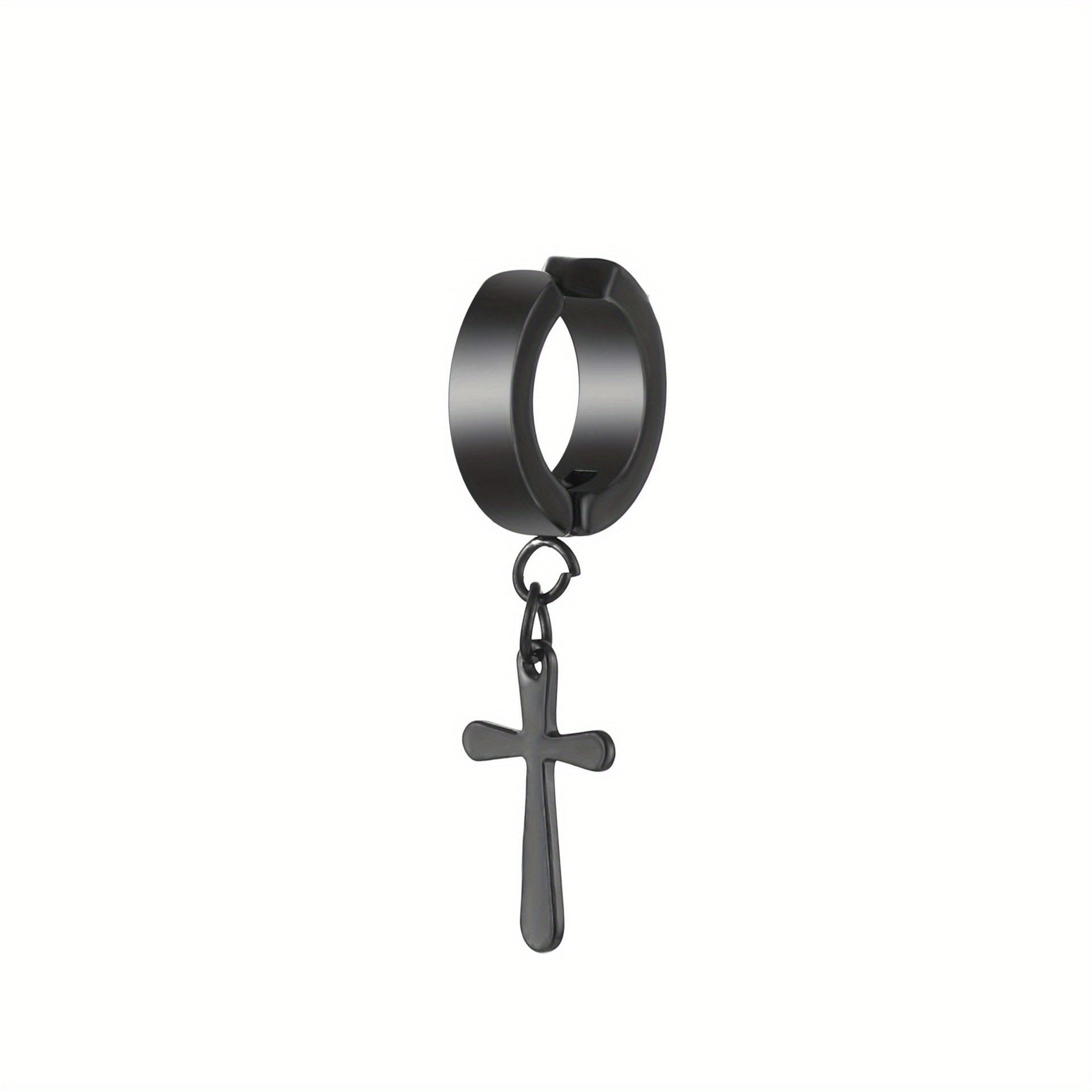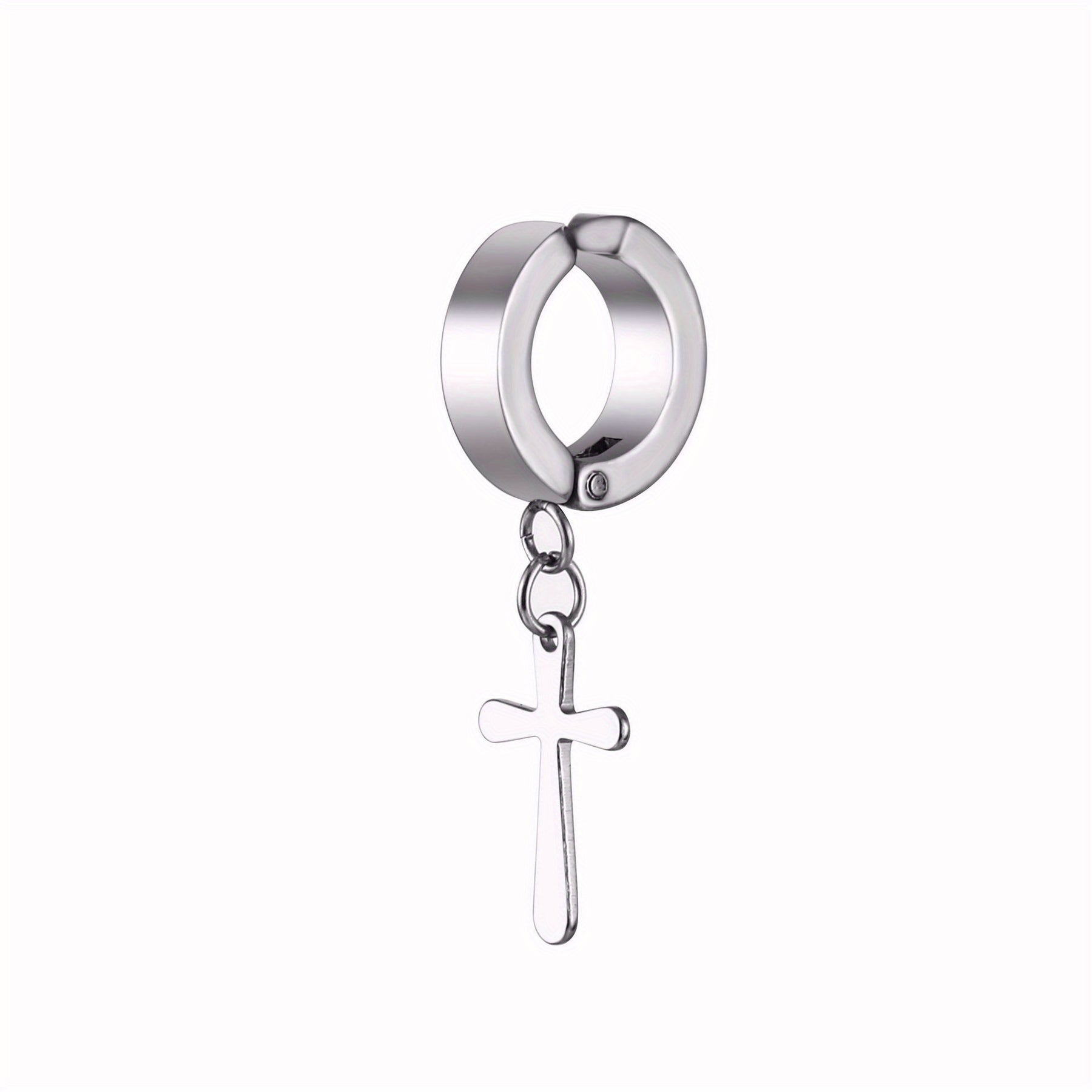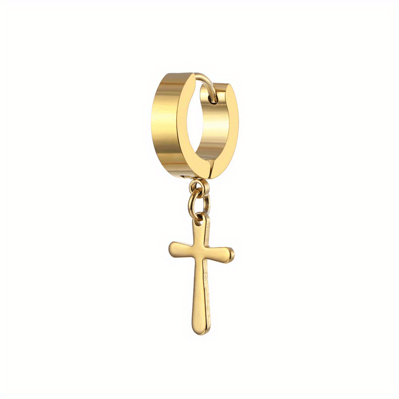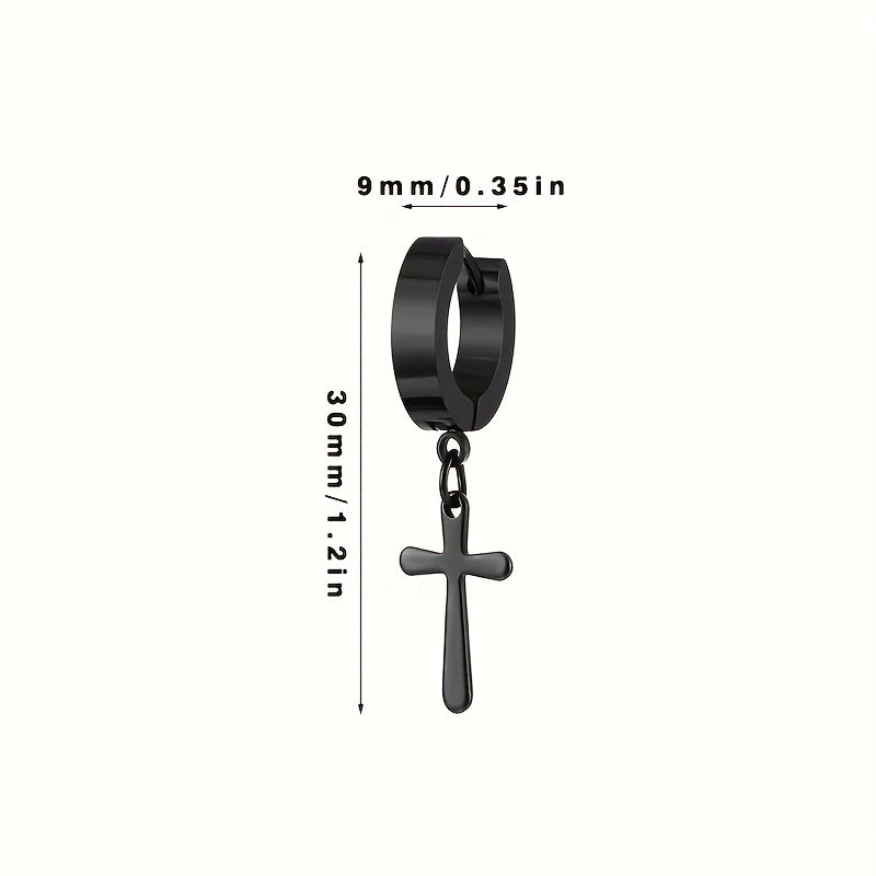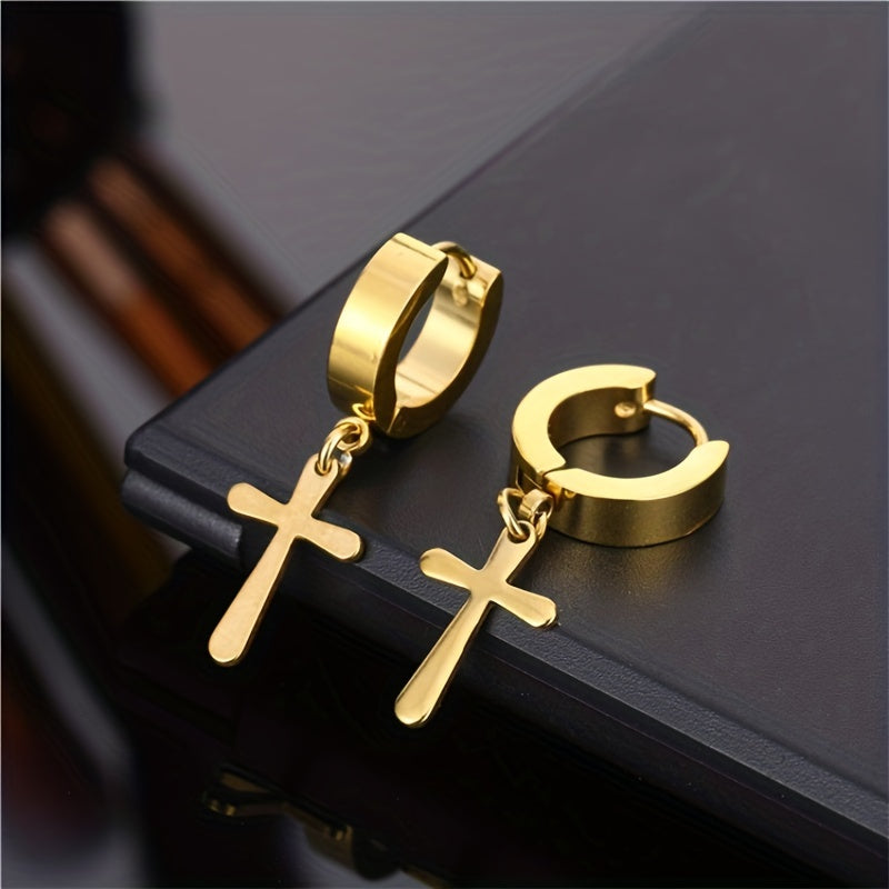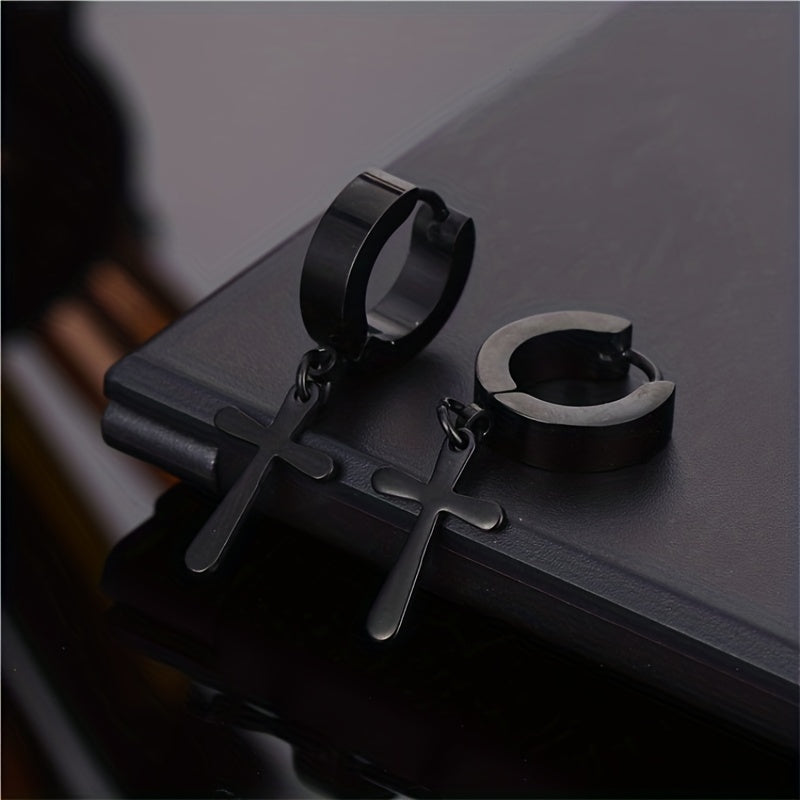 These stylish stainless steel earrings feature a water drop design with a cross accent, perfect for adding a touch of modern elegance to any outfit.
