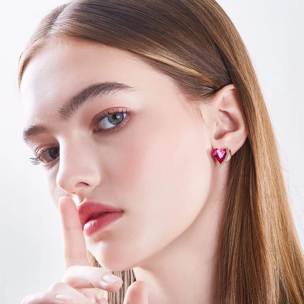These elegant heart stud earrings are crafted with sparkling Austrian crystals for a glamorous look.