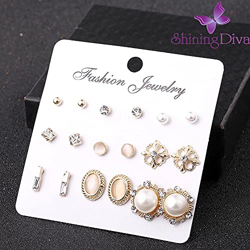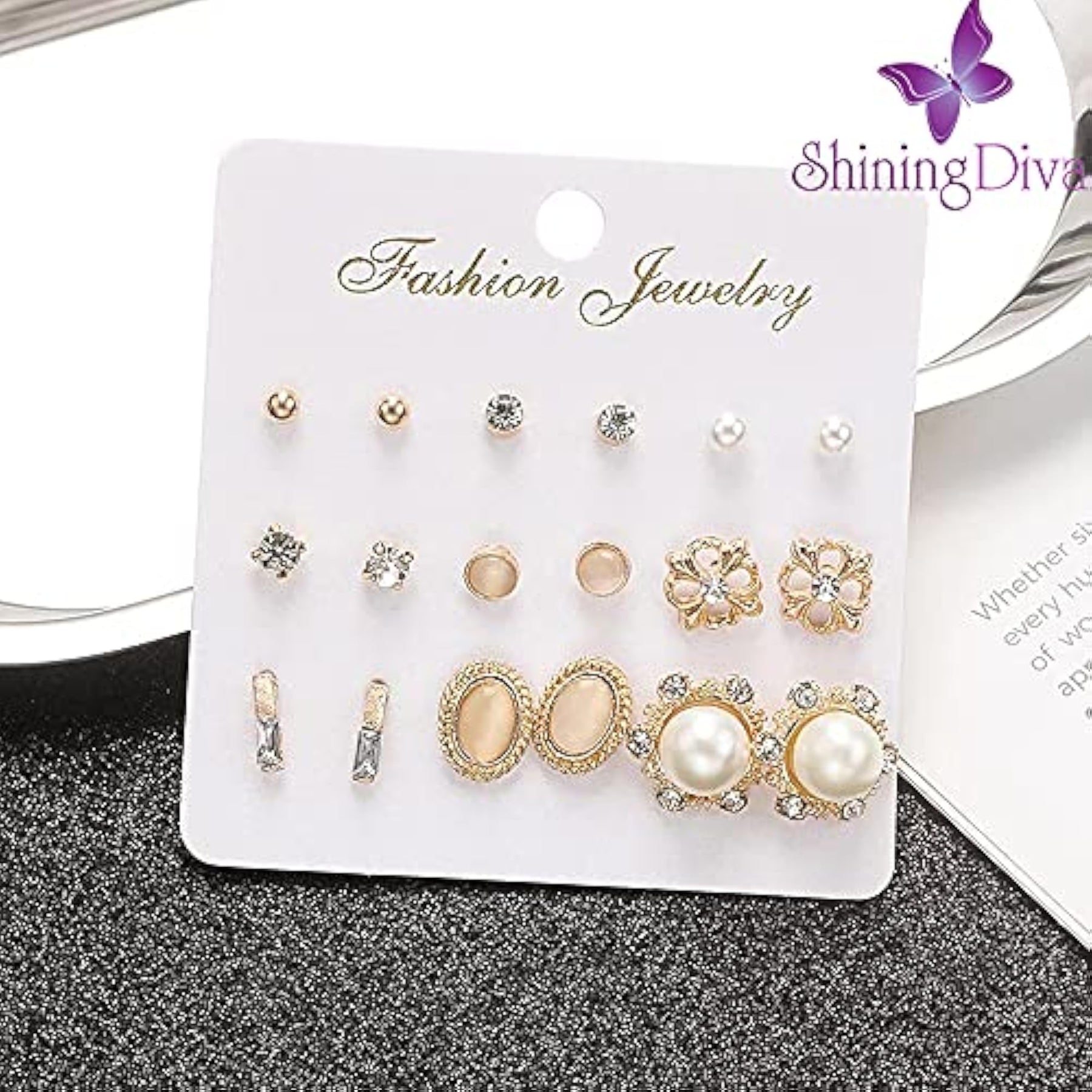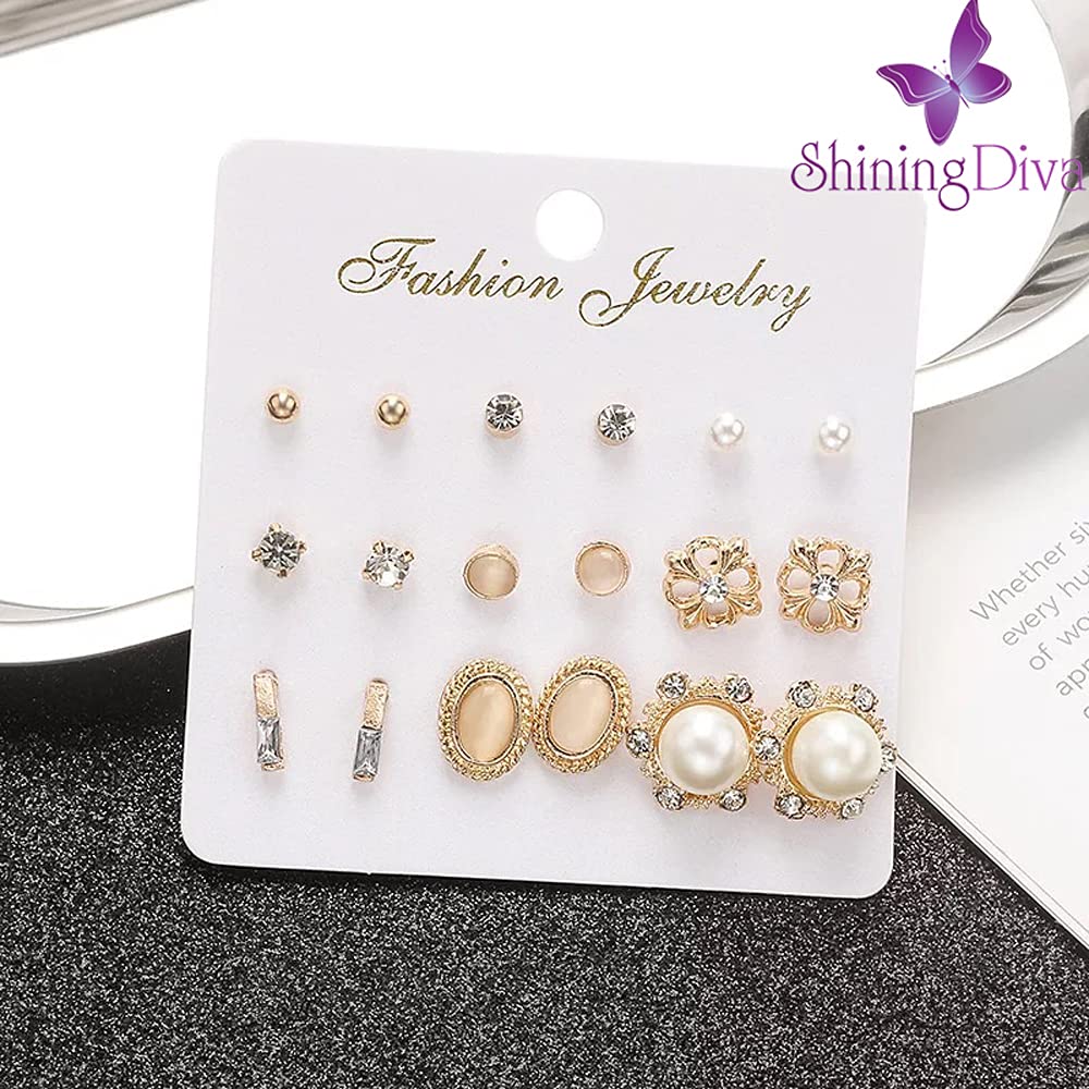 Elegant and trendy set of 9 pairs of metal earrings for women, perfect for any occasion.