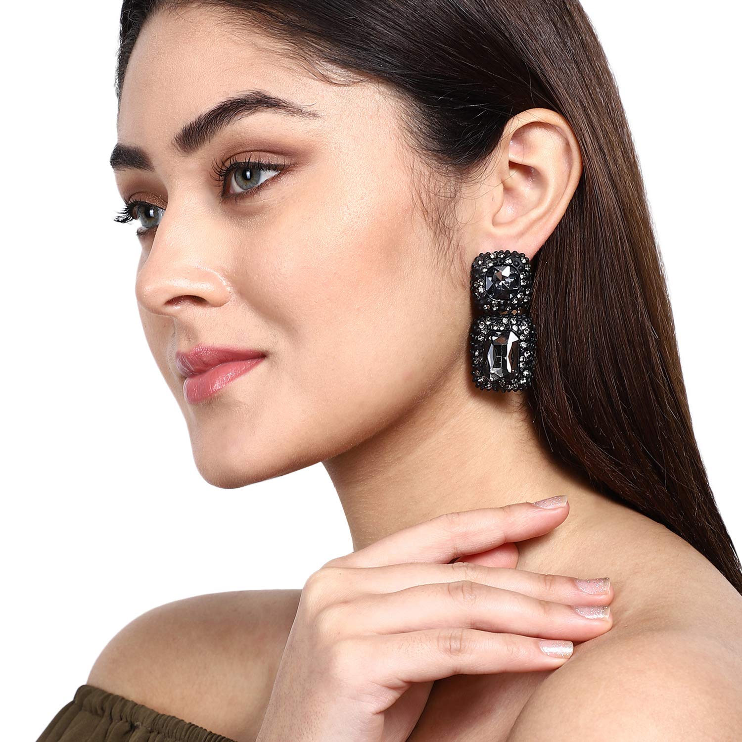 Enhance your look with these elegant crystal dangler earrings made from non-precious base metal. Perfect for adding a touch of sophistication to any outfit.
