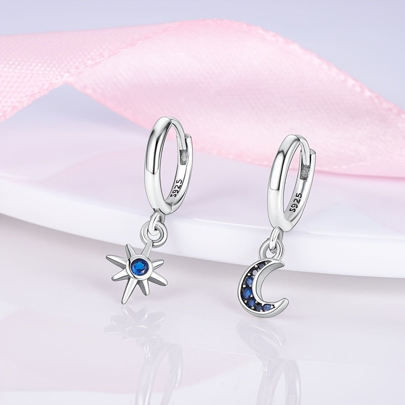 Sun Star Hoop Earrings Sparkling Silver Jewelry Gift for Her