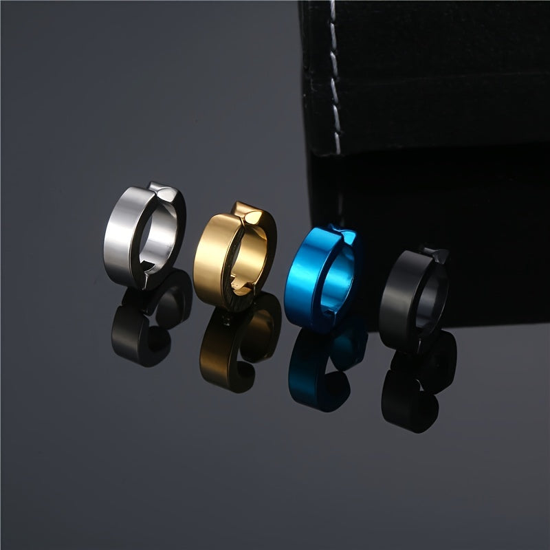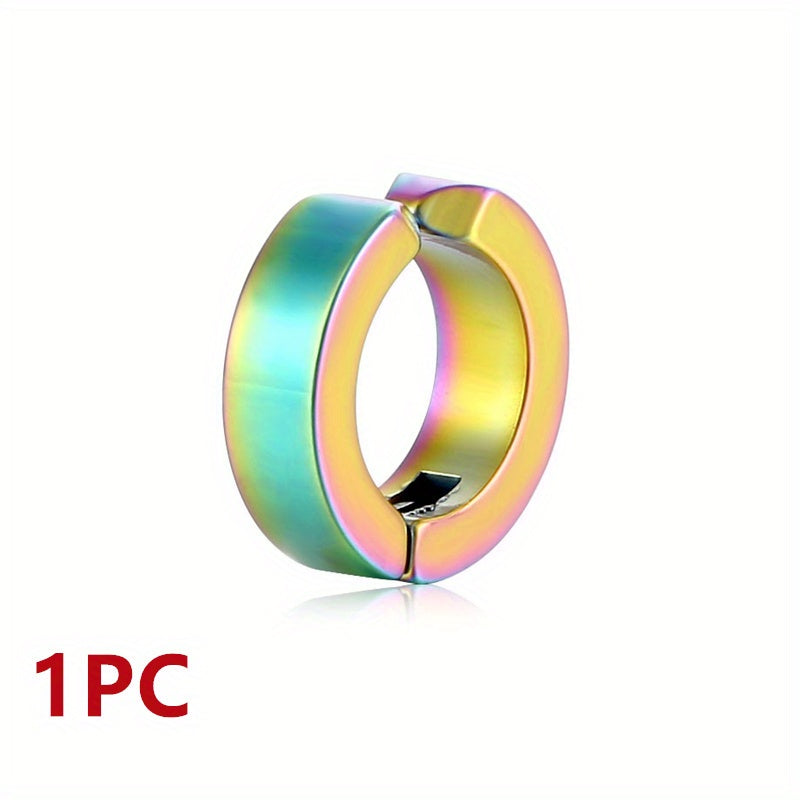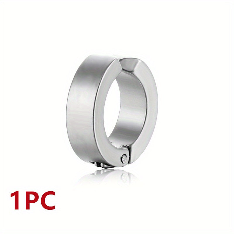 This stylish titanium steel earring is perfect for men who want a non-pierced option. The hoop design adds a touch of masculinity to any look.