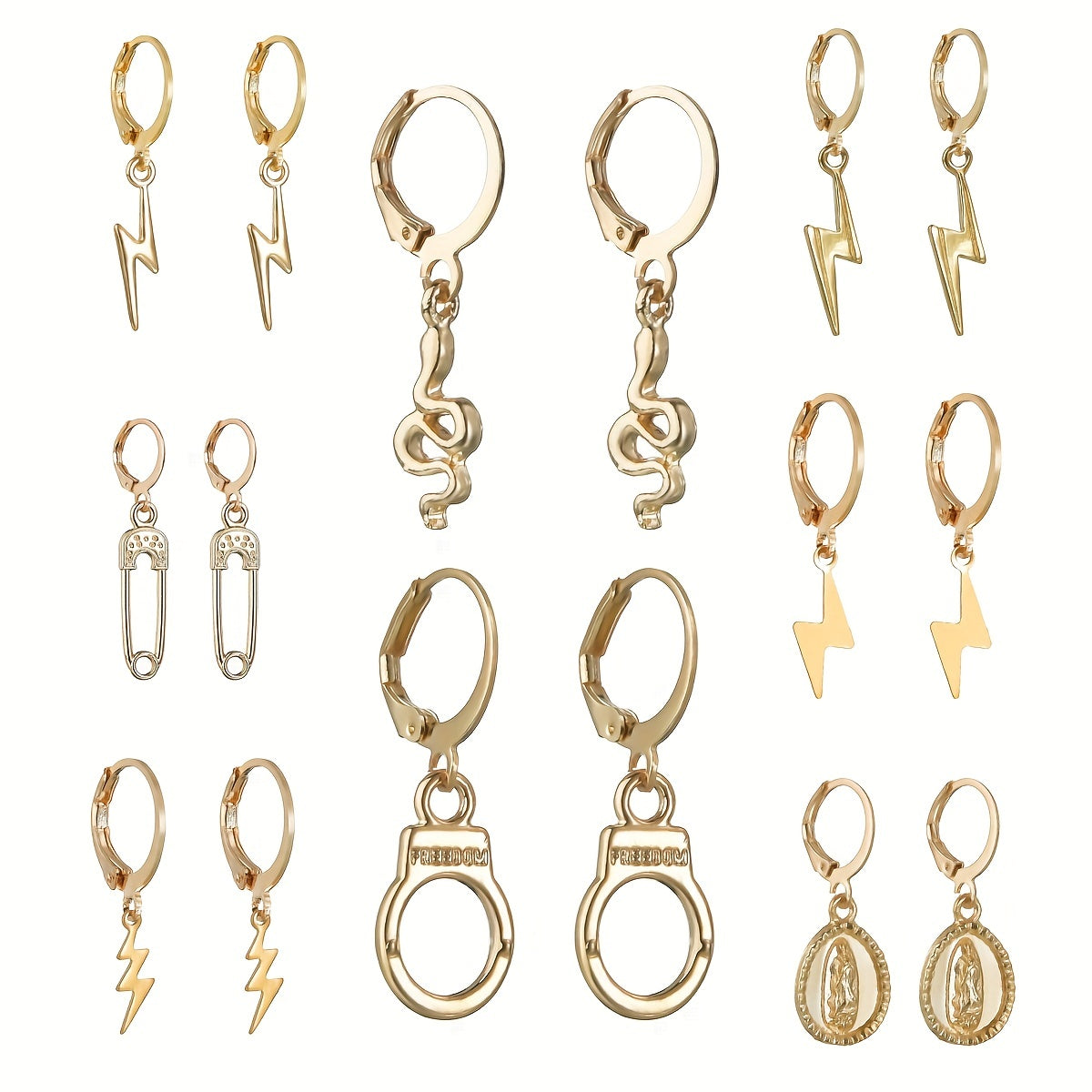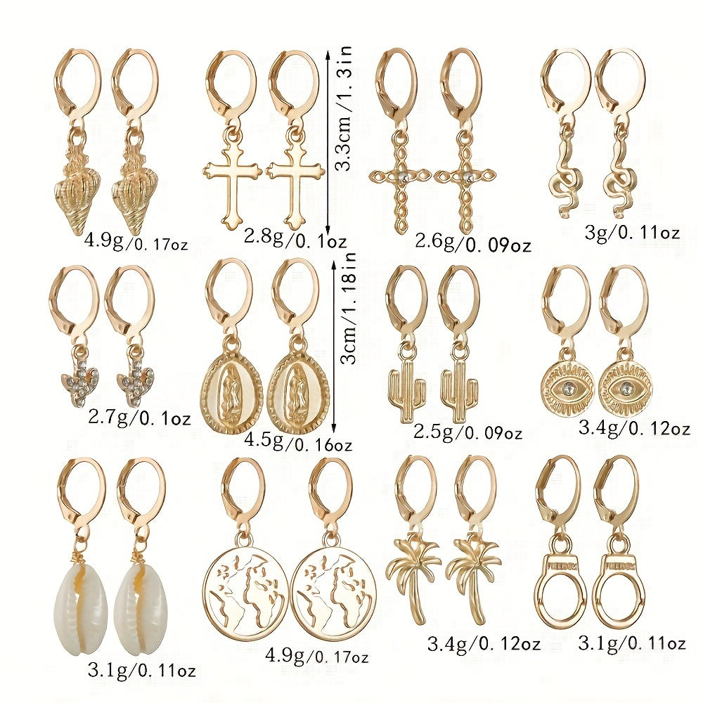 These stylish alloy earrings feature a variety of fun elements like snake, cross, devil's eye, and more. Perfect for adding a touch of personality to your vacation or party outfit.