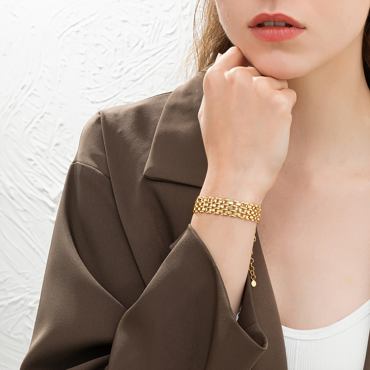 Enhance your style with this elegant 18K plated copper chain bracelet that adds a touch of sophistication to any outfit.