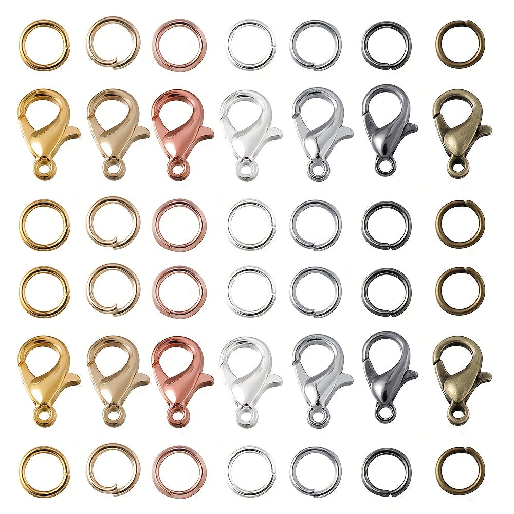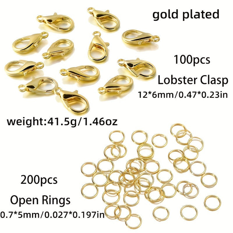 This jewelry making kit includes 200 open jump rings and 100 lobster clasps, perfect for creating bracelets, necklaces, and other DIY jewelry projects.